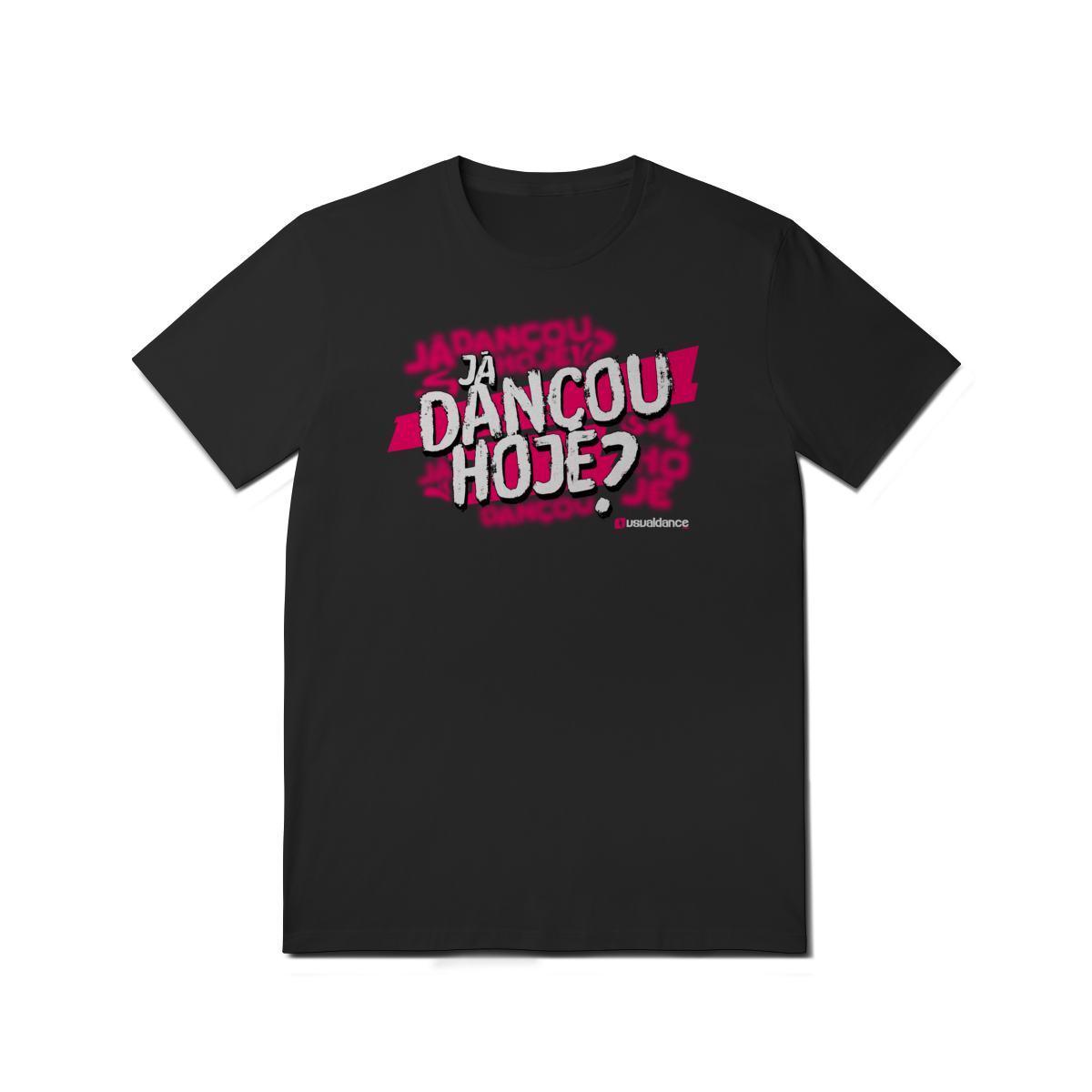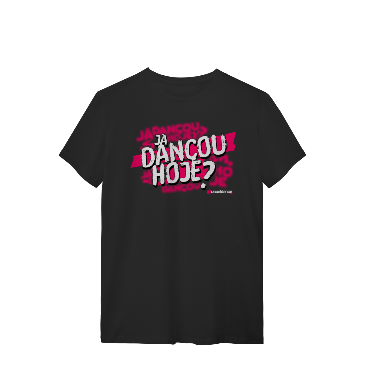 Mais que uma camiseta, o uniforme oficial da comunidade Usualdance. A estampa "Já Dançou Hoje?" em Rosa Neon é um manifesto de quem vive a dança intensamente.