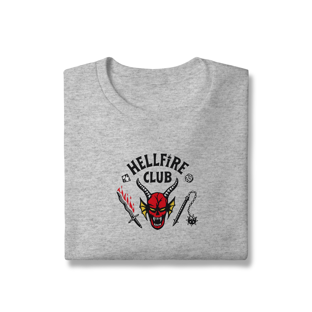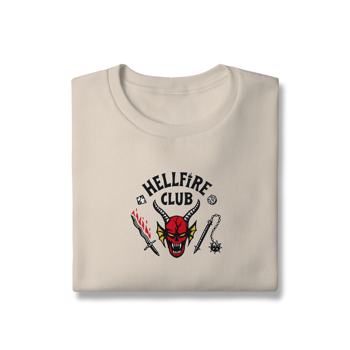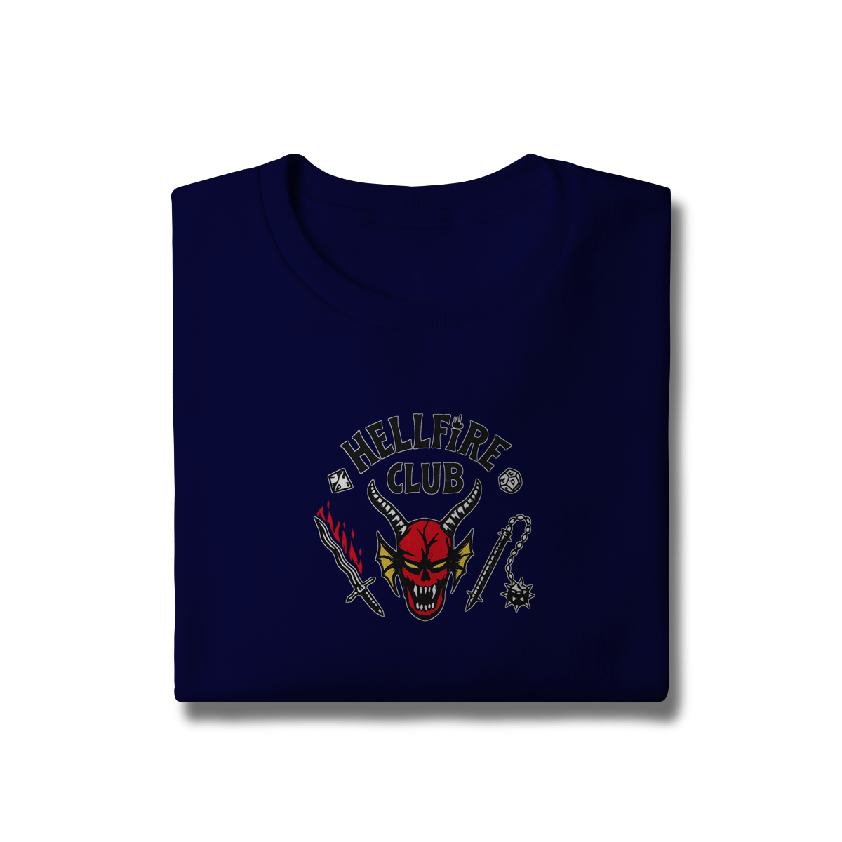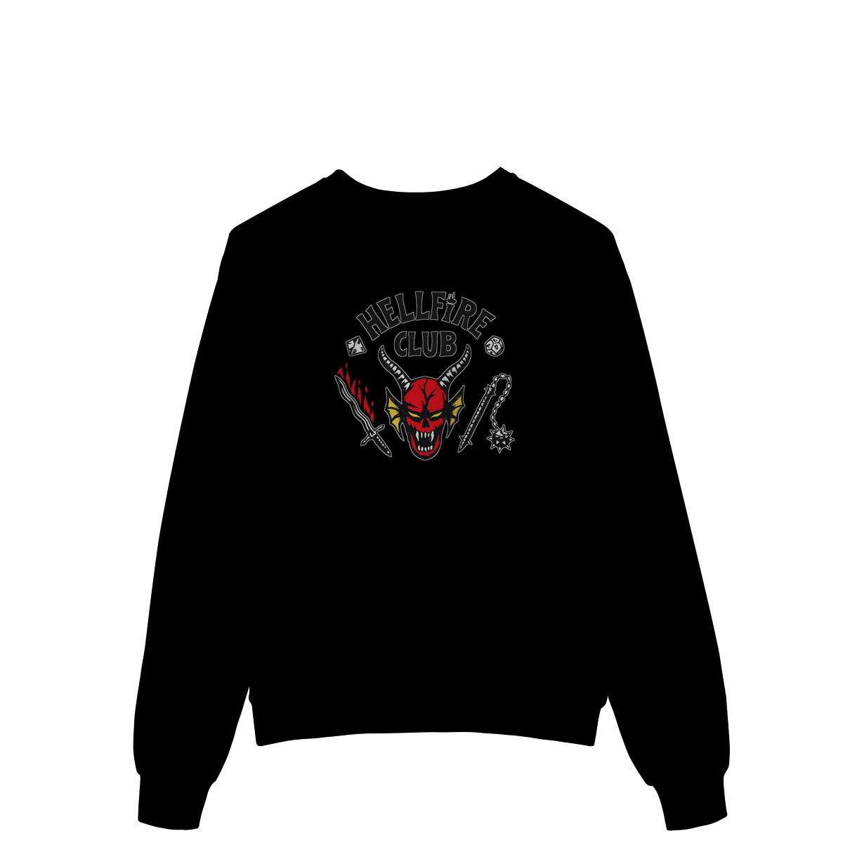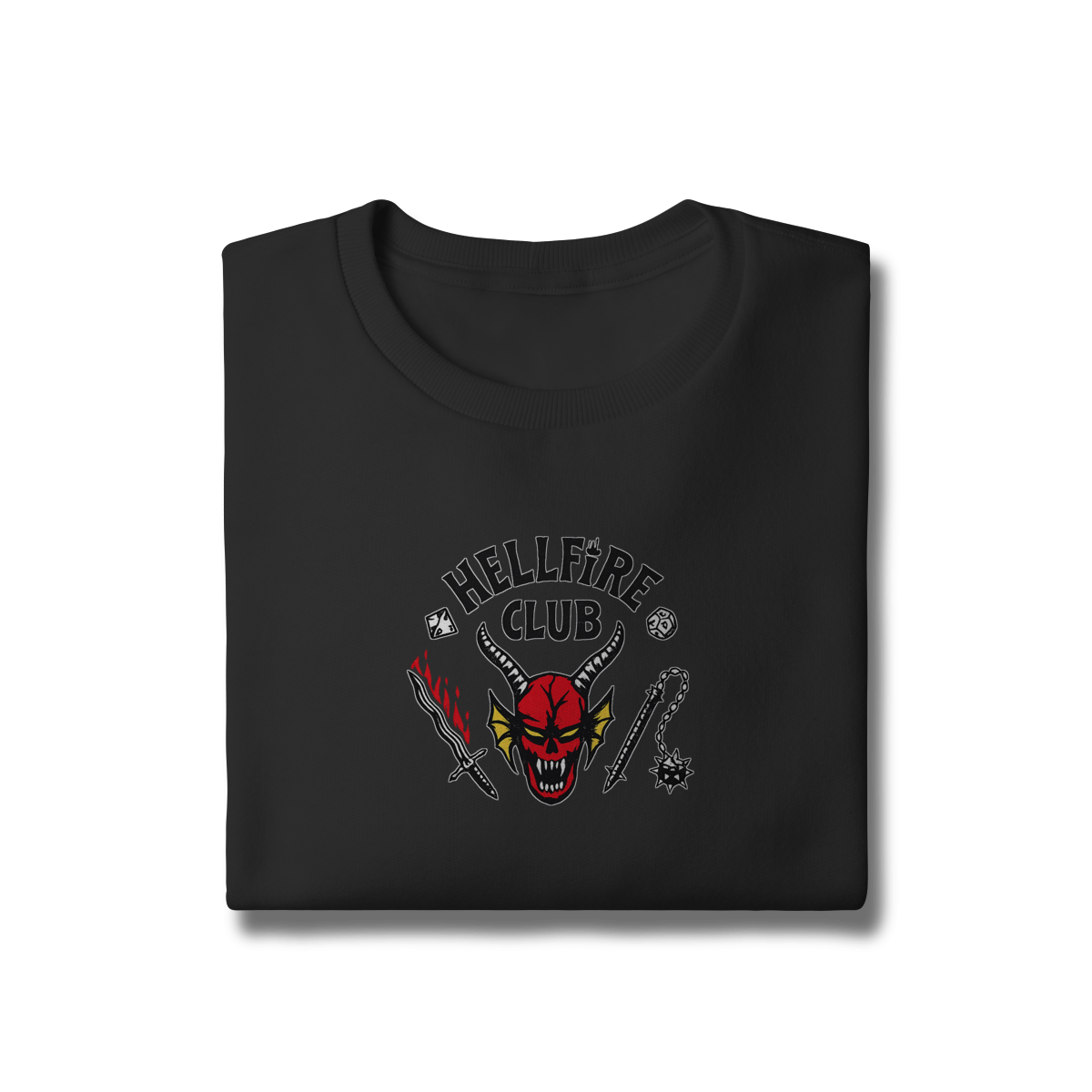 Com estampa icônica inspirada no universo Dark, RPG e cultura underground, ele entrega presença forte sem exagero. O contraste perfeito na peça preta garante leitura clara e visual marcante, mantendo a estética sombria que define quem faz parte do clube.