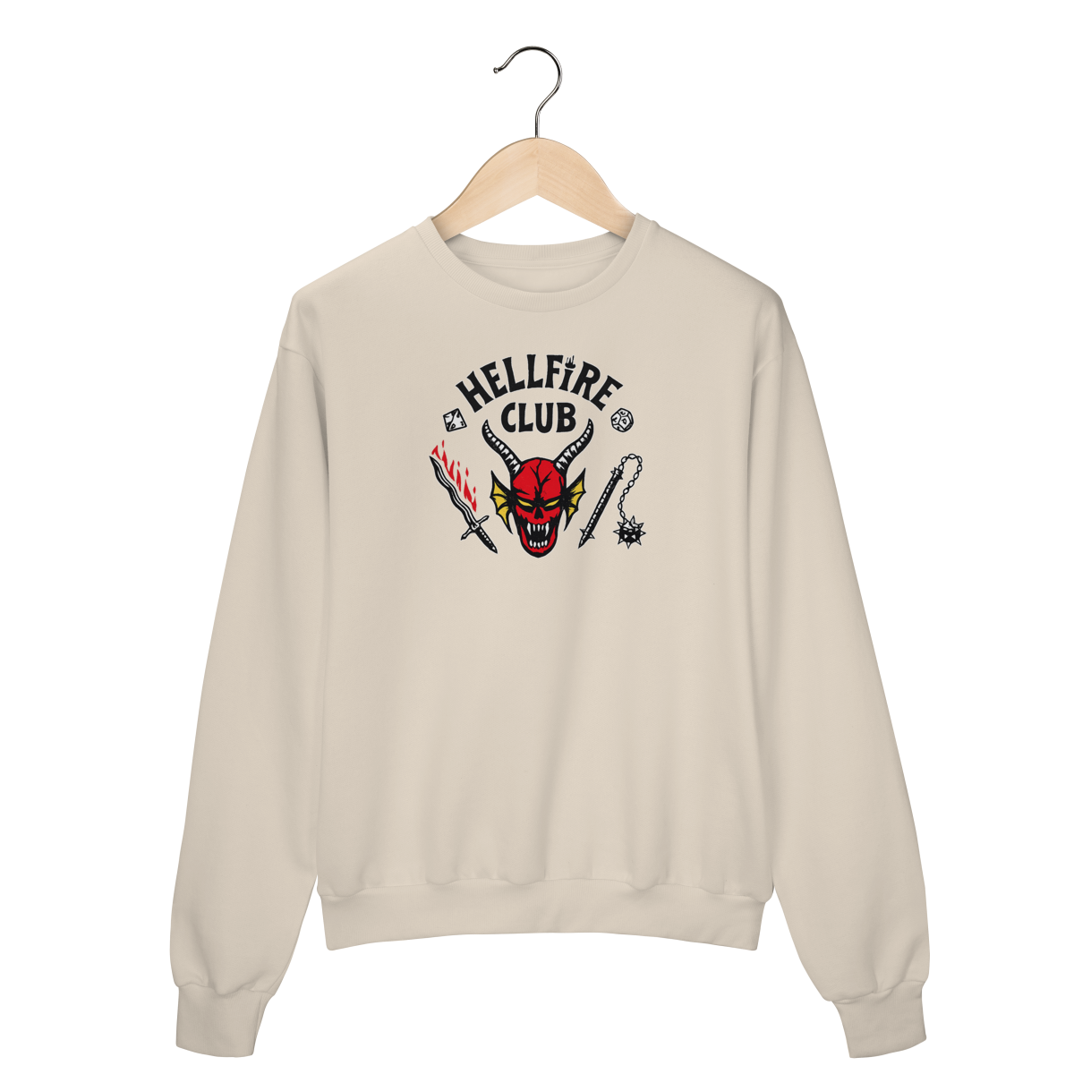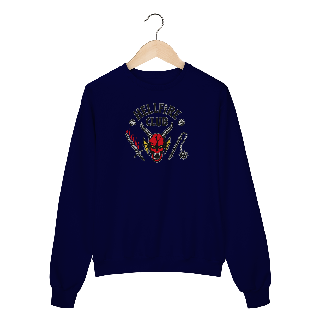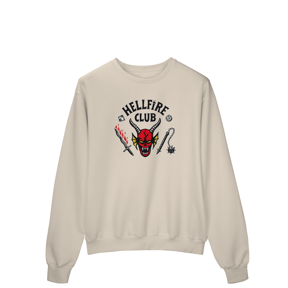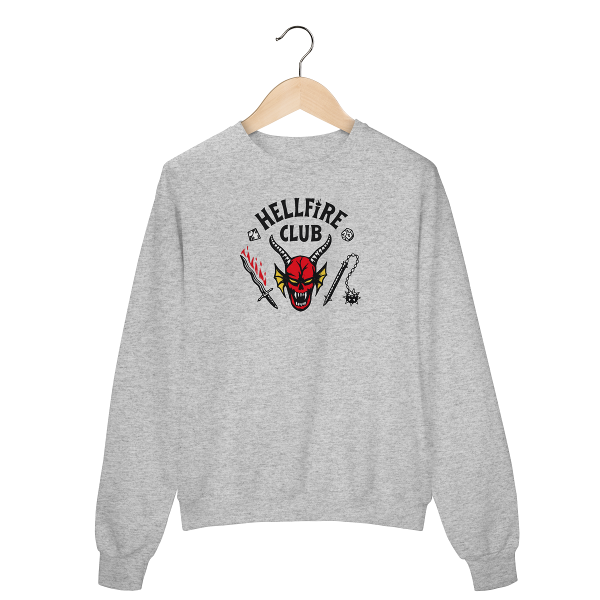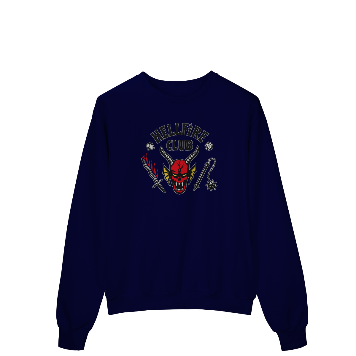 Com estampa icônica inspirada no universo Dark, RPG e cultura underground, ele entrega presença forte sem exagero. O contraste perfeito na peça preta garante leitura clara e visual marcante, mantendo a estética sombria que define quem faz parte do clube.