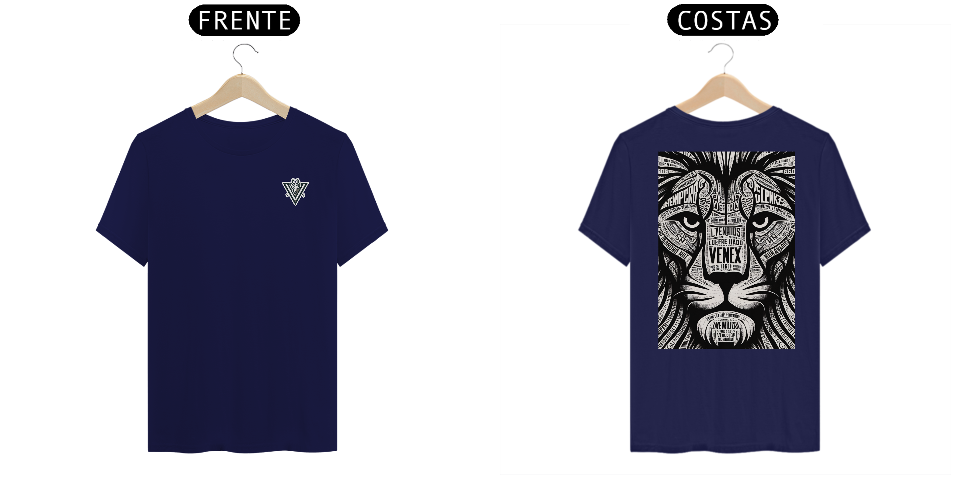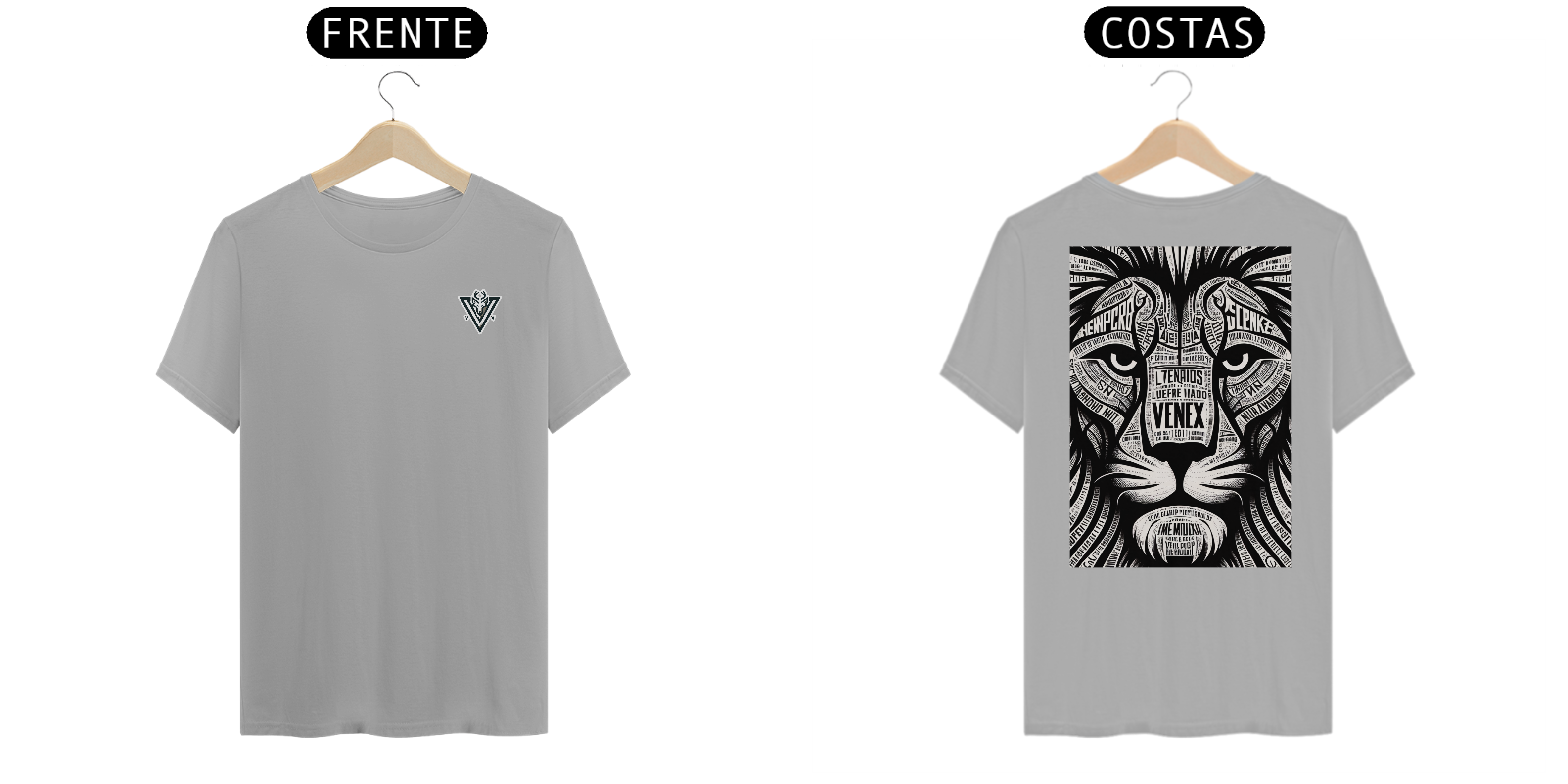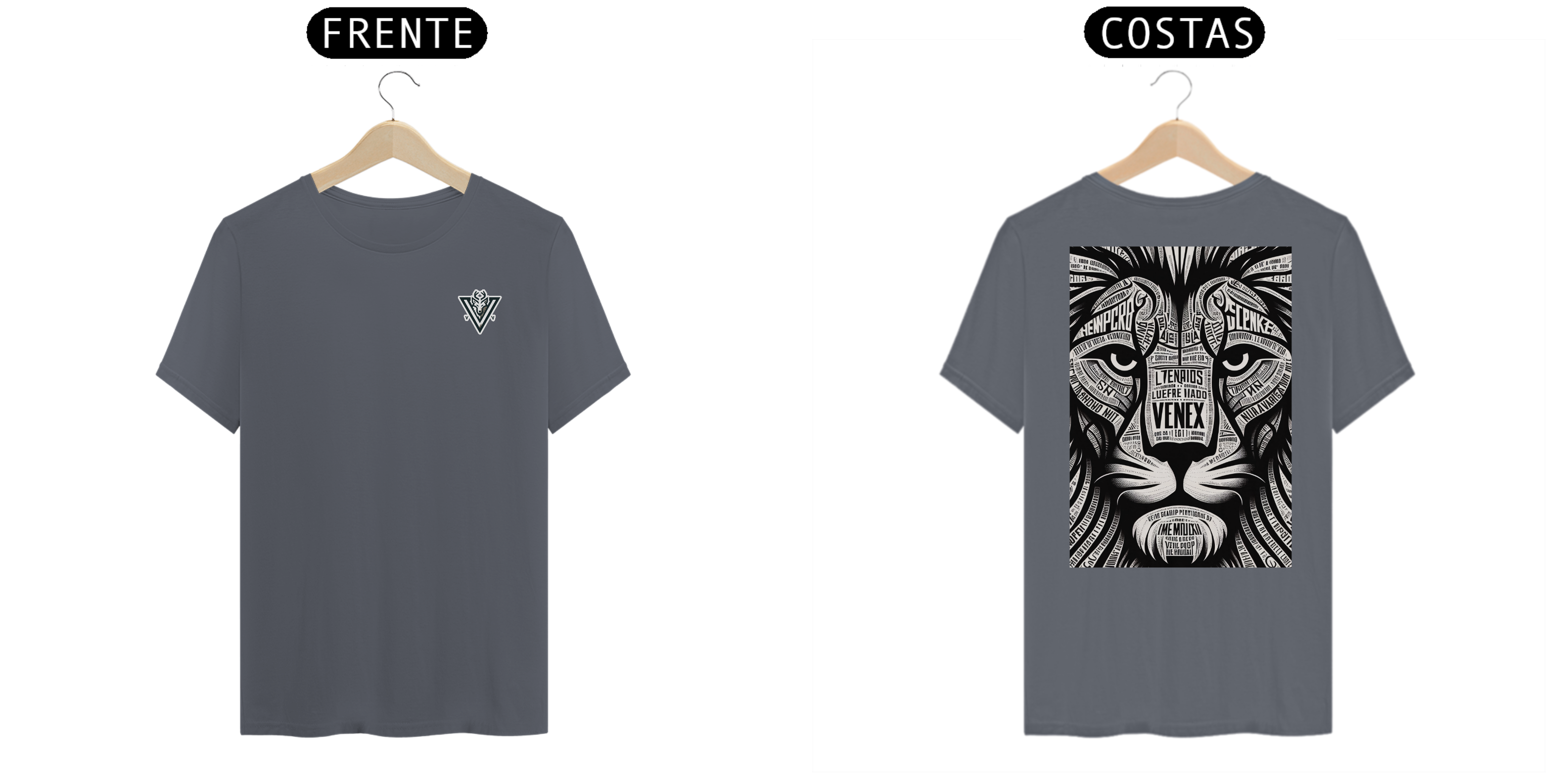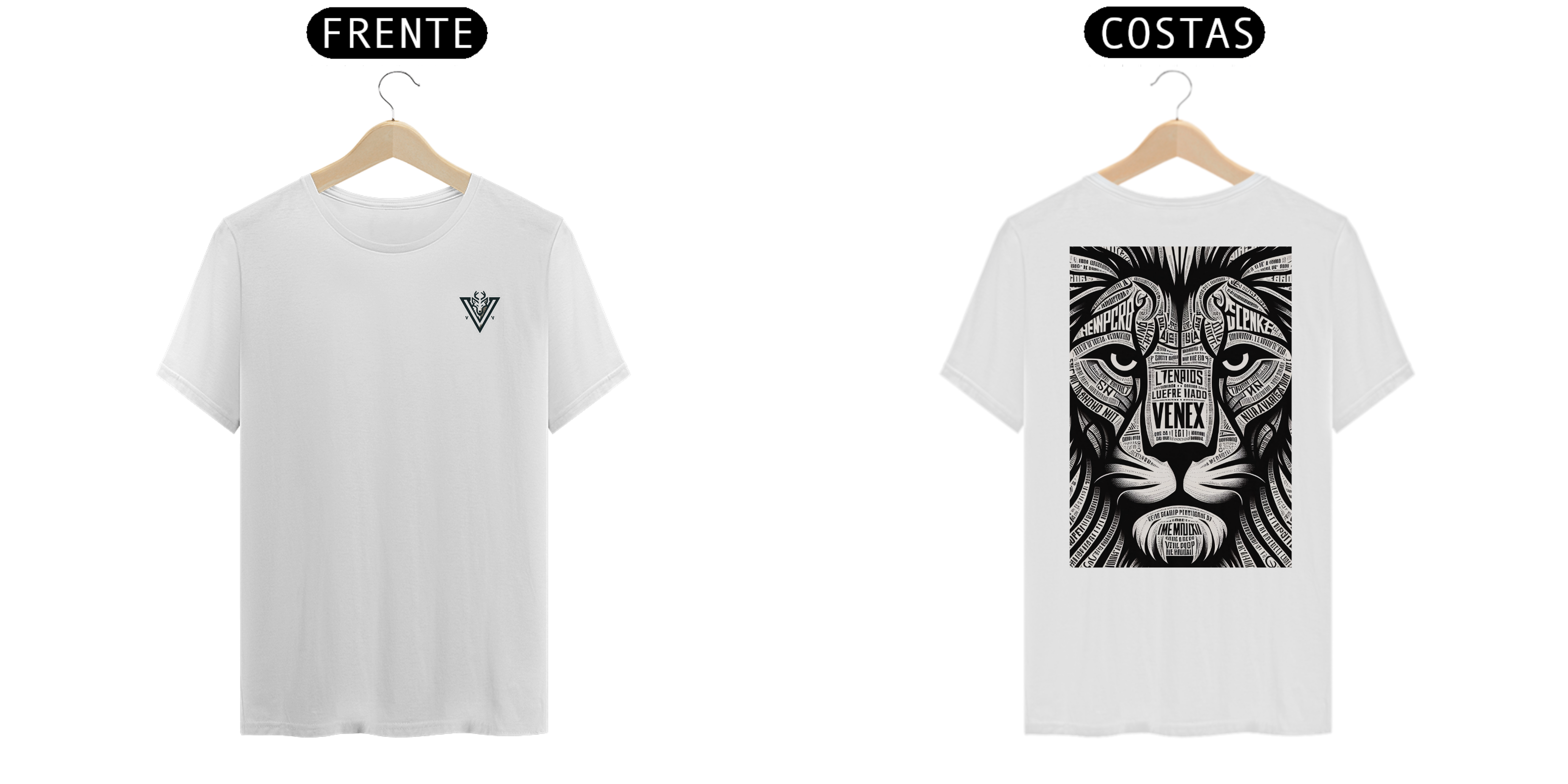 Descubra a elegância e o estilo inigualável com a camisa “VENEX”, adornada com uma estampa artística, intrincada e inponente de um leão, cada curva e contorno preenchido com letras estilizadas que juntas, criam uma obra de arte vestível.