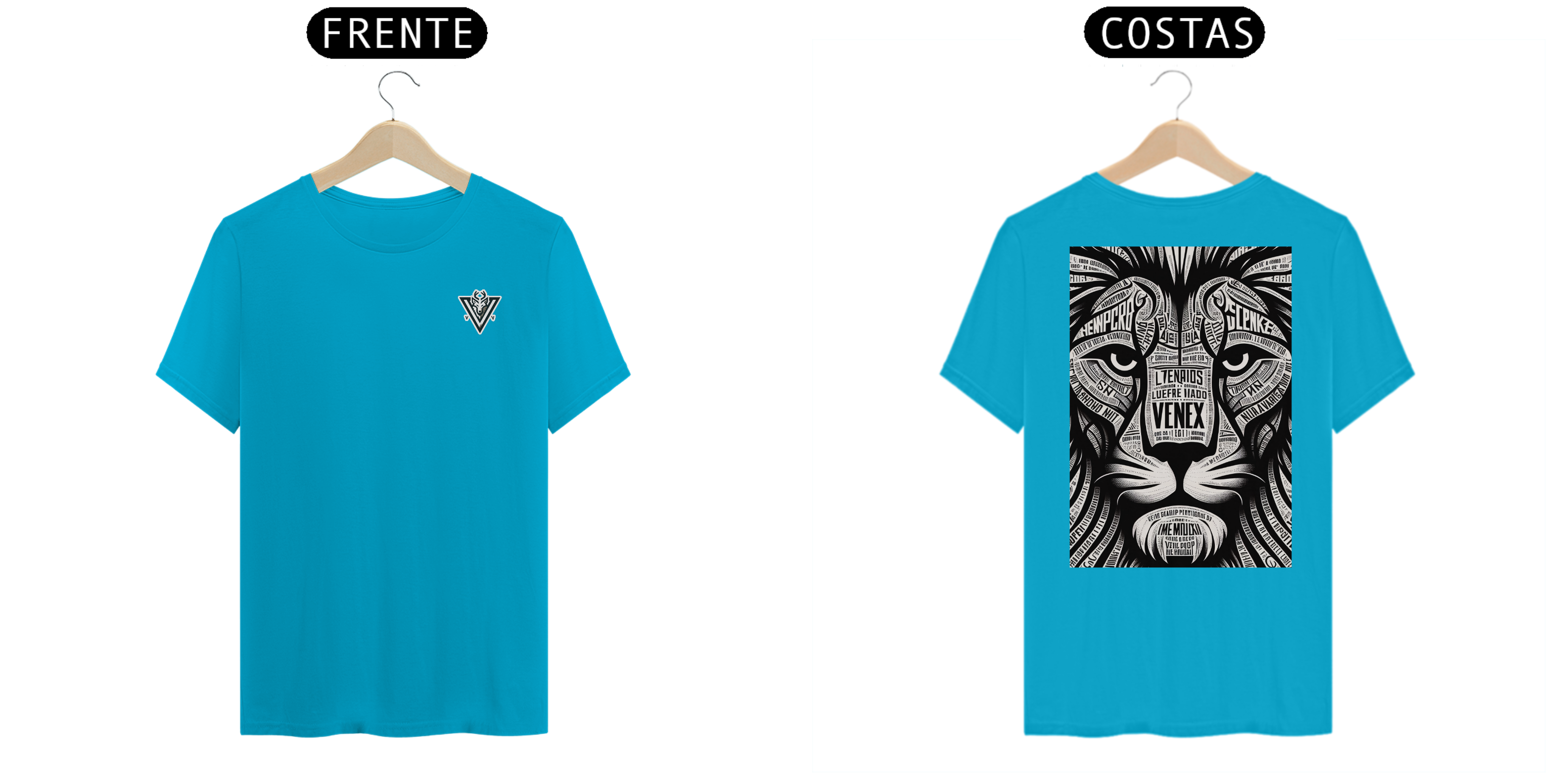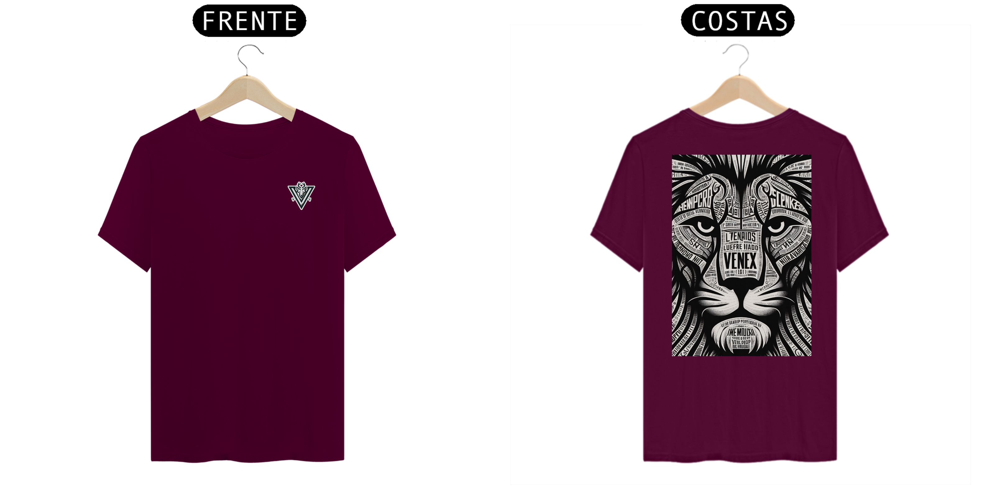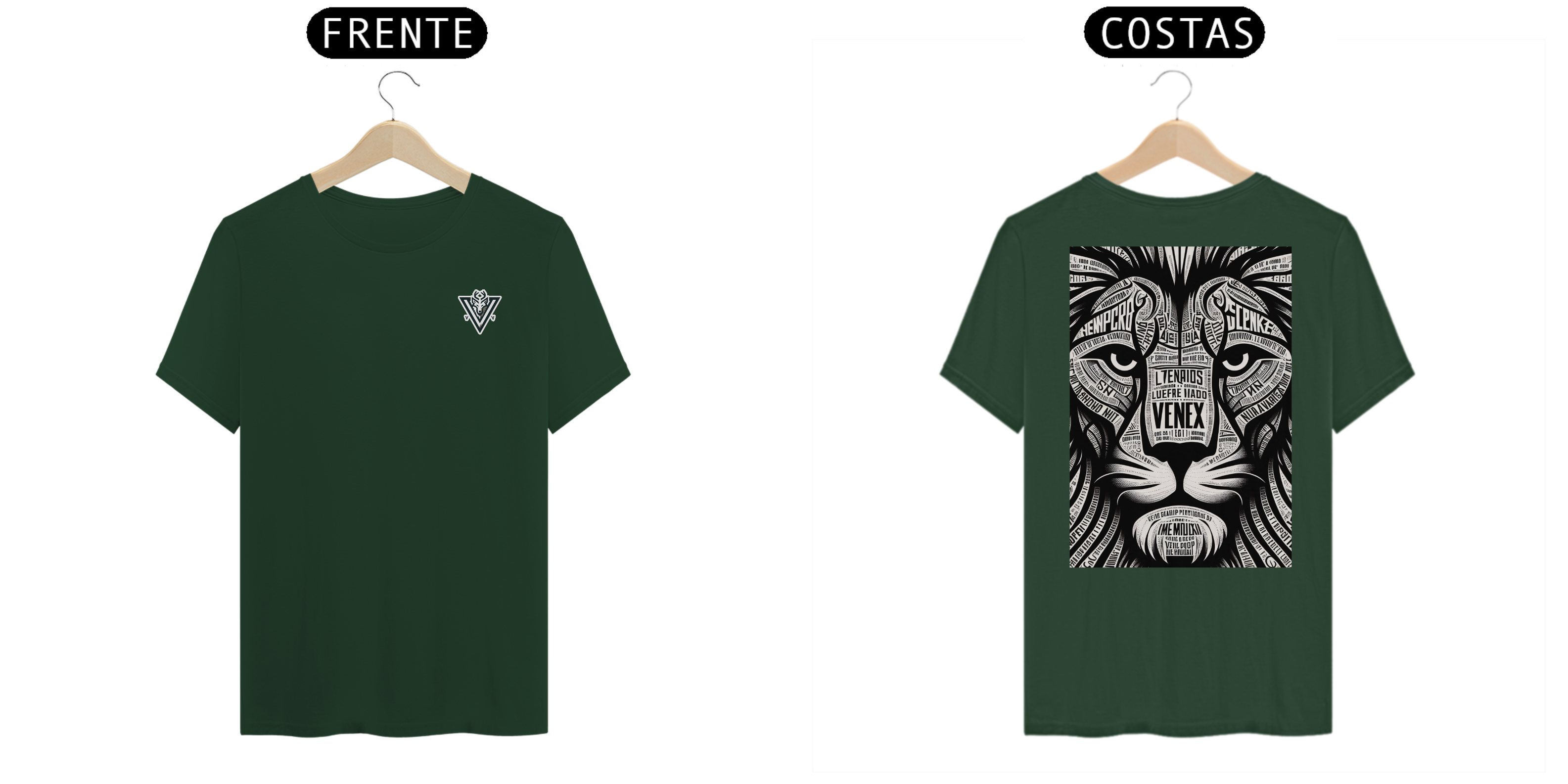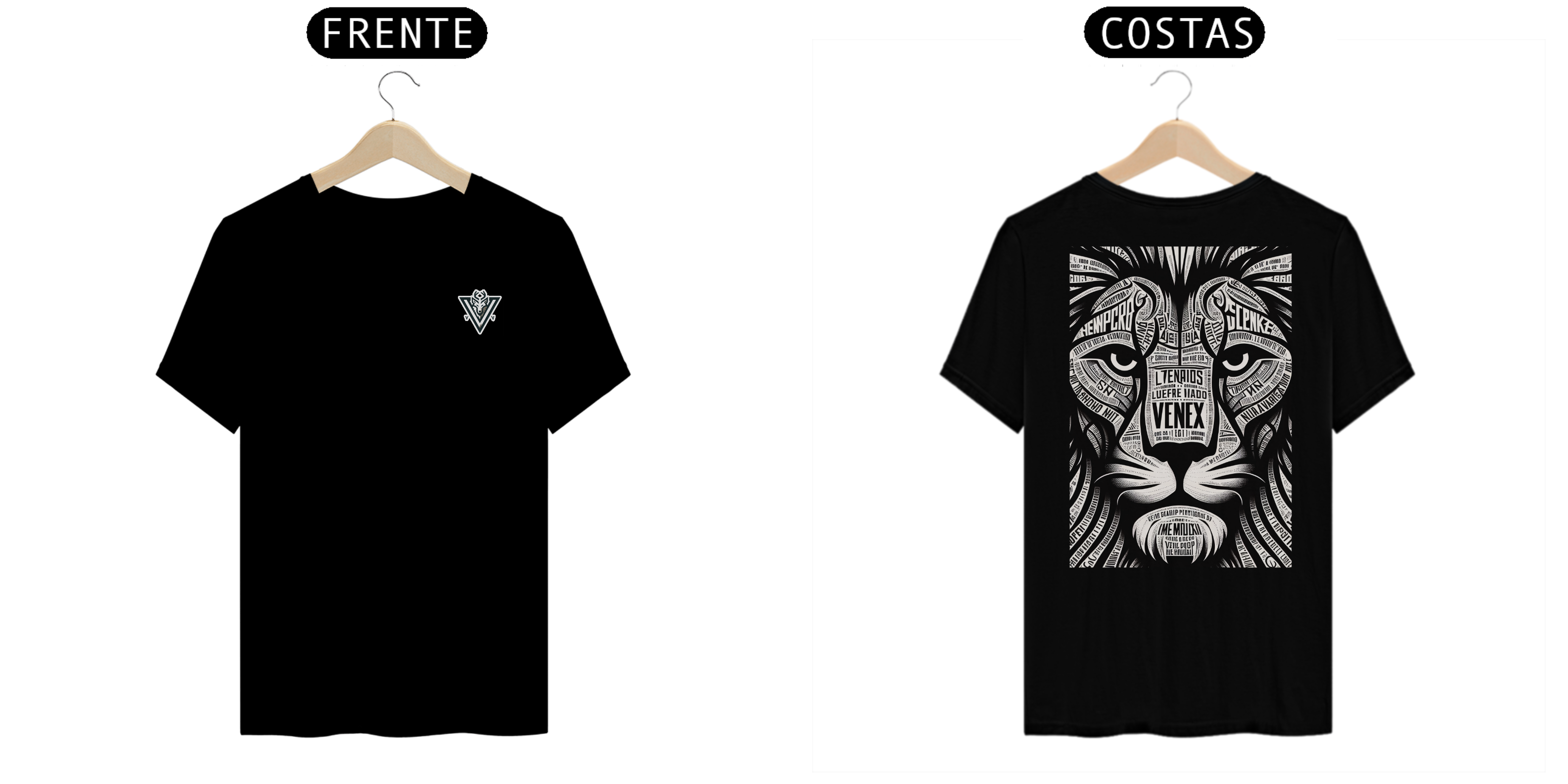 Descubra a elegância e o estilo inigualável com a camisa “VENEX”, adornada com uma estampa artística, intrincada e inponente de um leão, cada curva e contorno preenchido com letras estilizadas que juntas, criam uma obra de arte vestível.