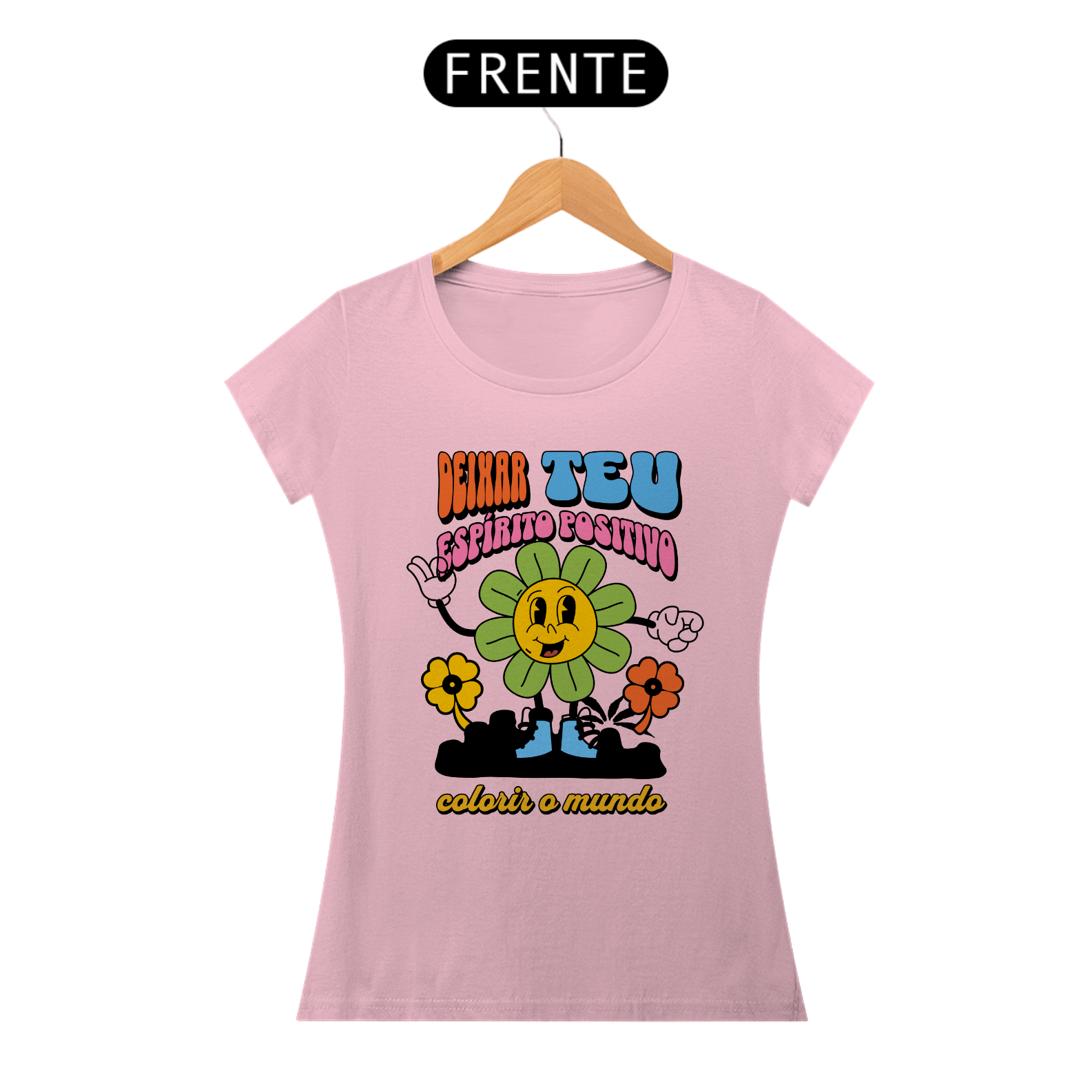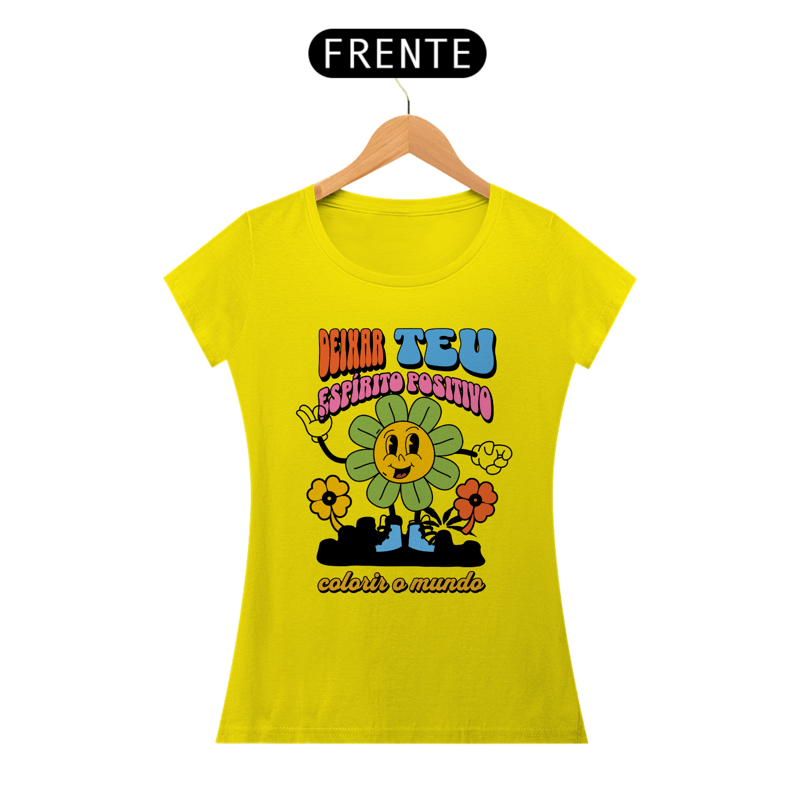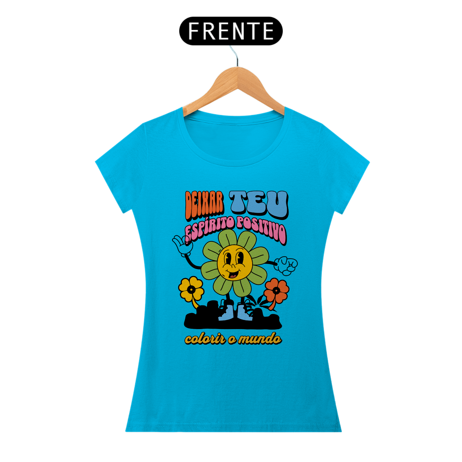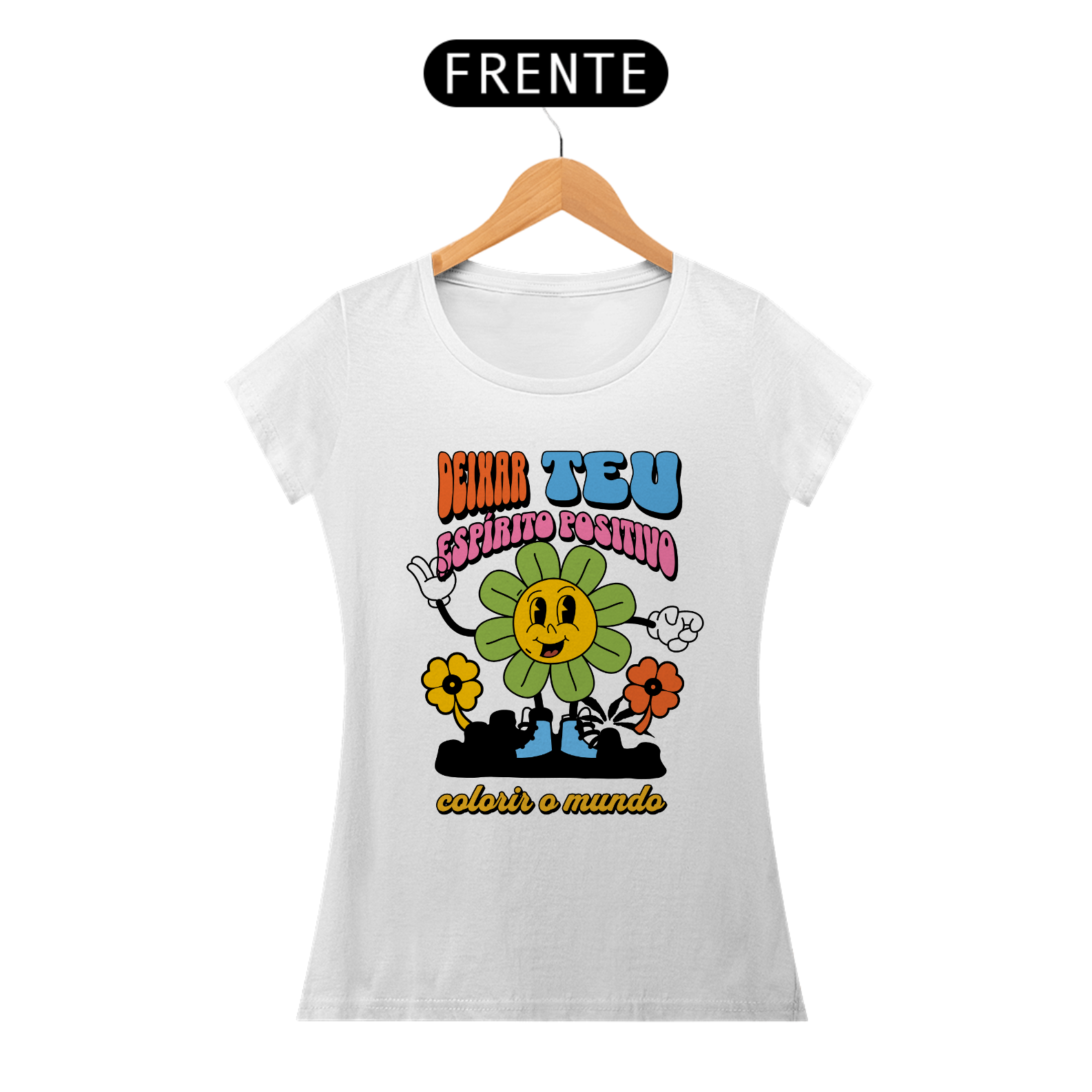 Deixe seu espírito positivo brilhar com nossa vibrante camisa feminina 'Deixa Teu Espírito Positivo Colorir o Mundo'. Mais do que apenas uma peça de roupa, esta camisa é um convite para espalhar alegria e otimismo por onde quer que você vá.