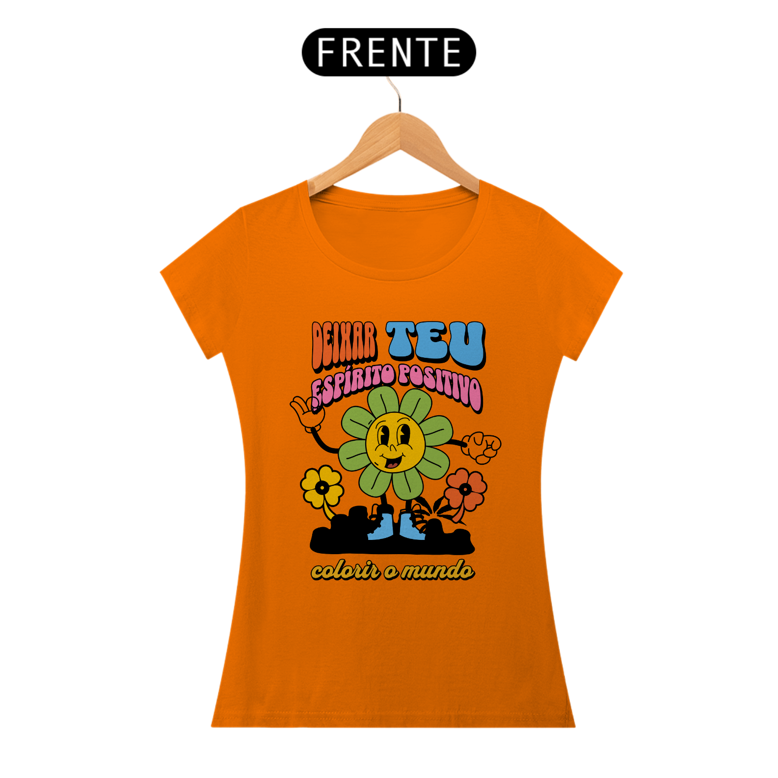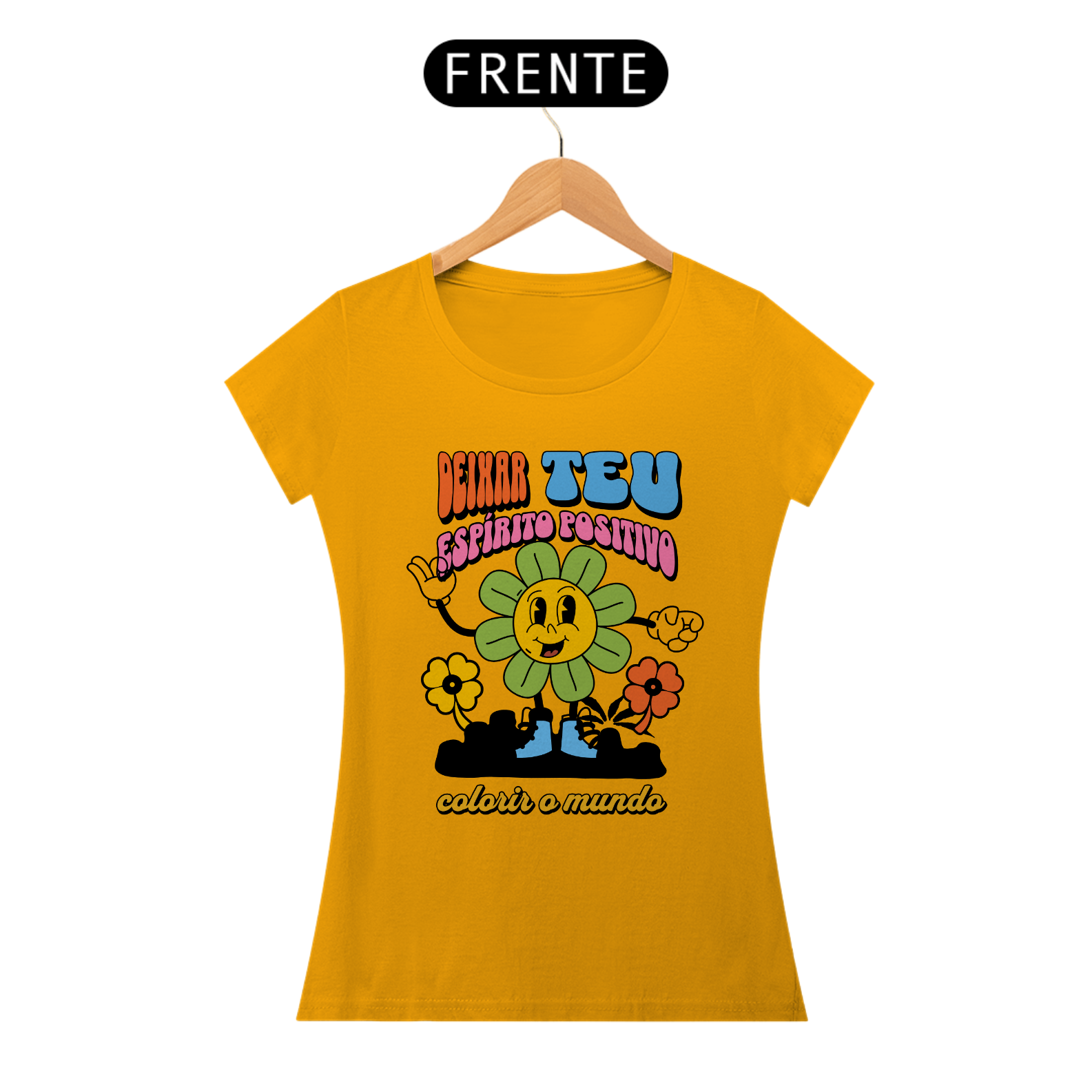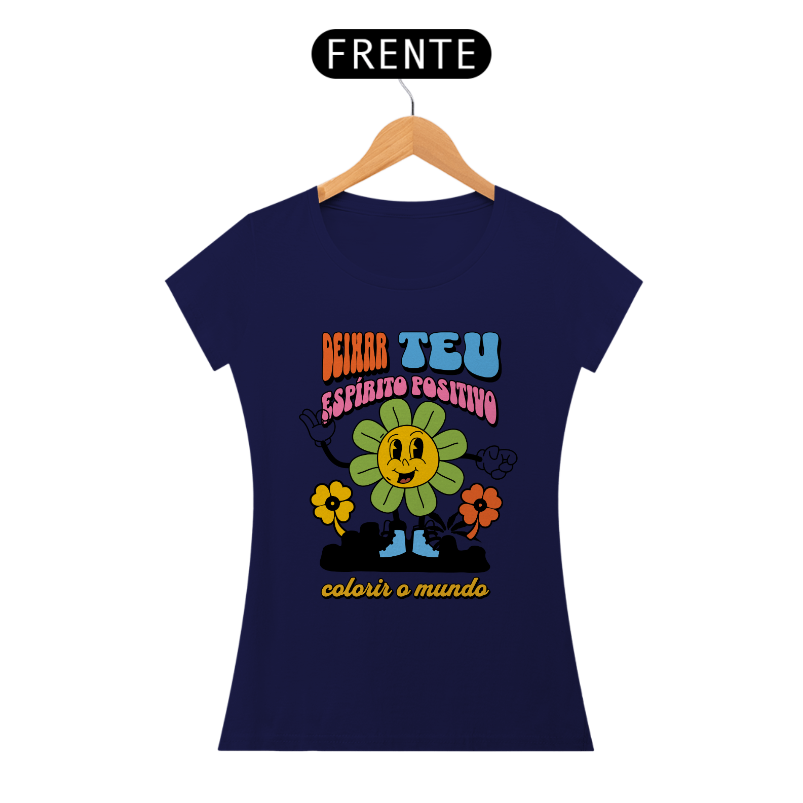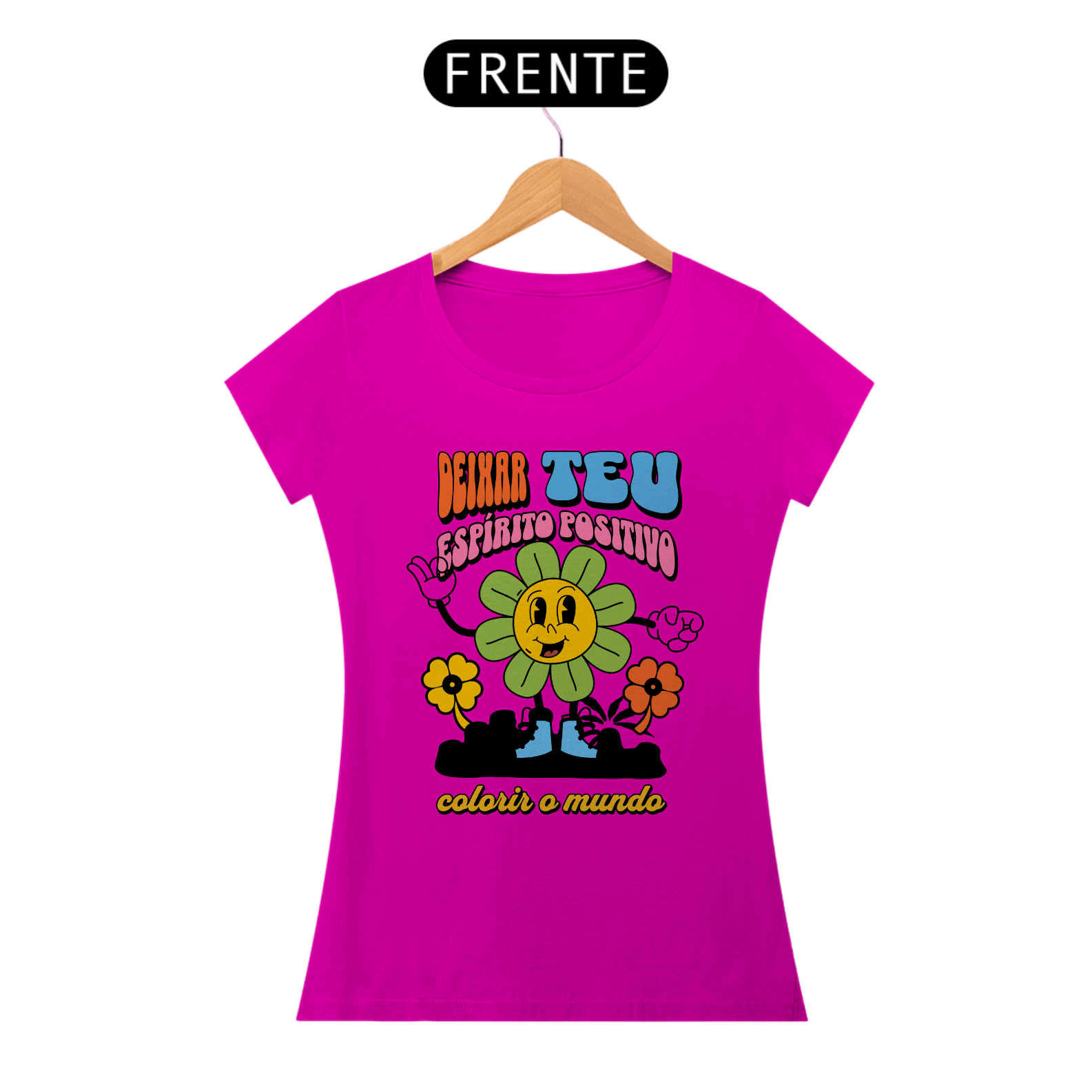 Deixe seu espírito positivo brilhar com nossa vibrante camisa feminina 'Deixa Teu Espírito Positivo Colorir o Mundo'. Mais do que apenas uma peça de roupa, esta camisa é um convite para espalhar alegria e otimismo por onde quer que você vá.