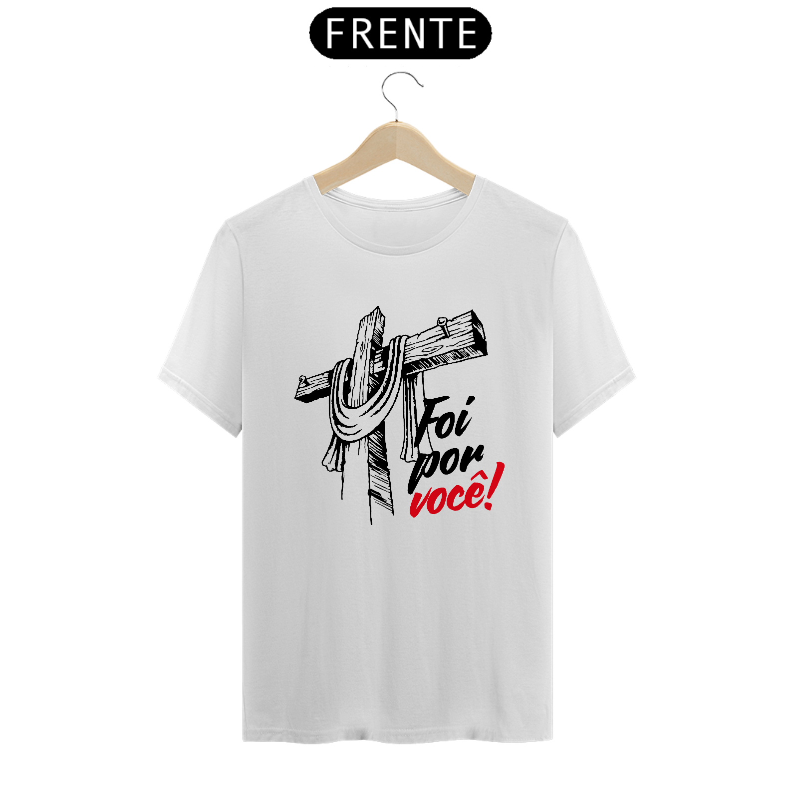 Explore o poder da fé e do amor com nossa inspiradora camisa T-Shirt Classic 'Foi Por Você'. Mais do que apenas uma peça de vestuário, esta camisa é um lembrete tangível do sacrifício e da redenção que são a base da nossa crença.
