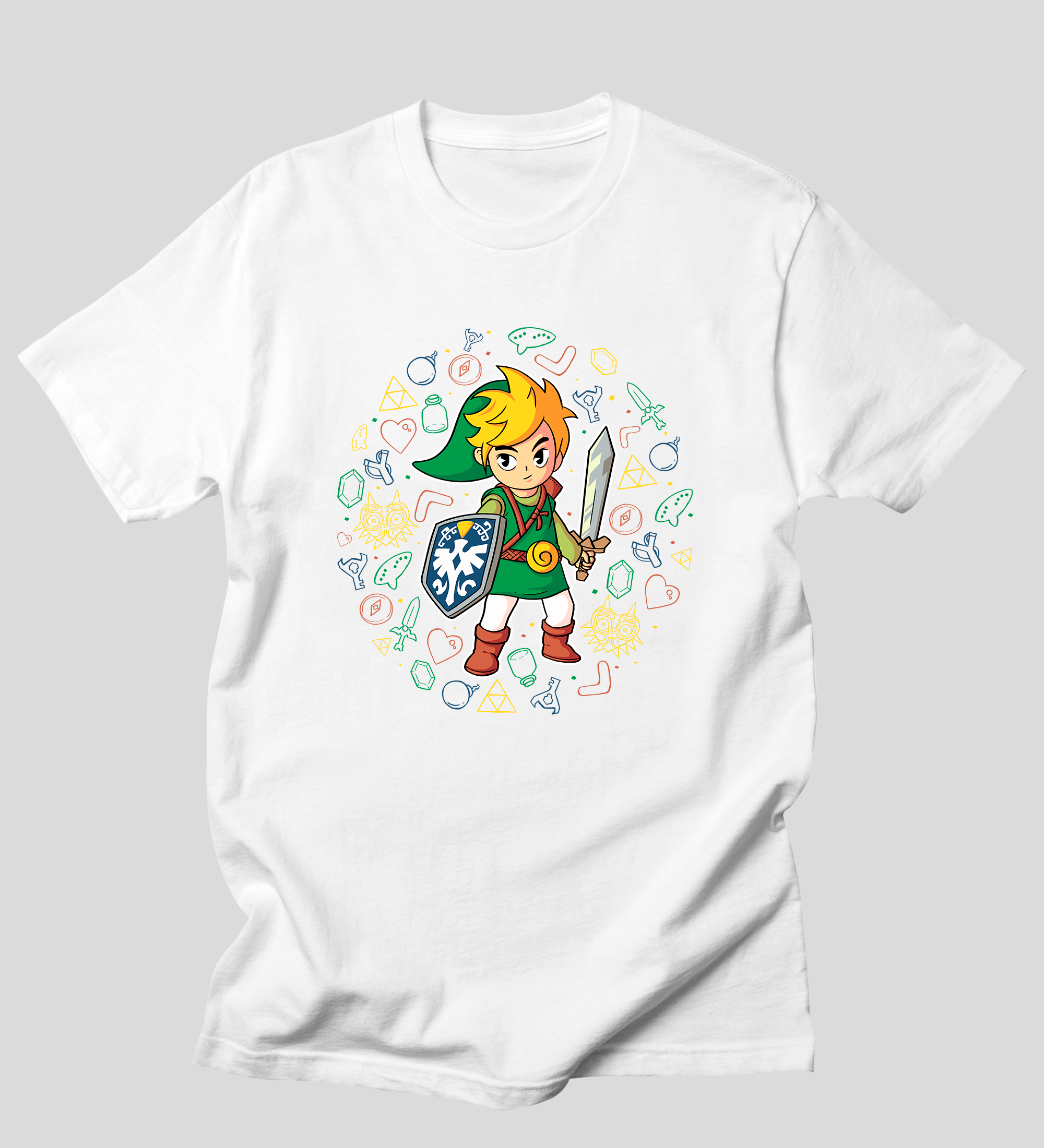 Cores do produto: Como cada tela de computador ou celular tem seu próprio jeito de mostrar cores, então a cor da sua camiseta e da estampa pode ser um pouco diferente do que você viu online.