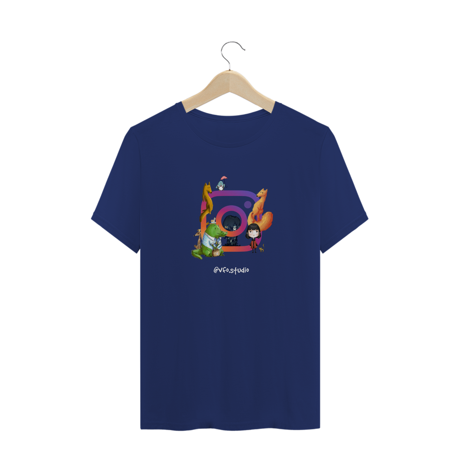 Camisa do @vfo.studio no Instagram, com alguns dos personagens que aparecem por lá.