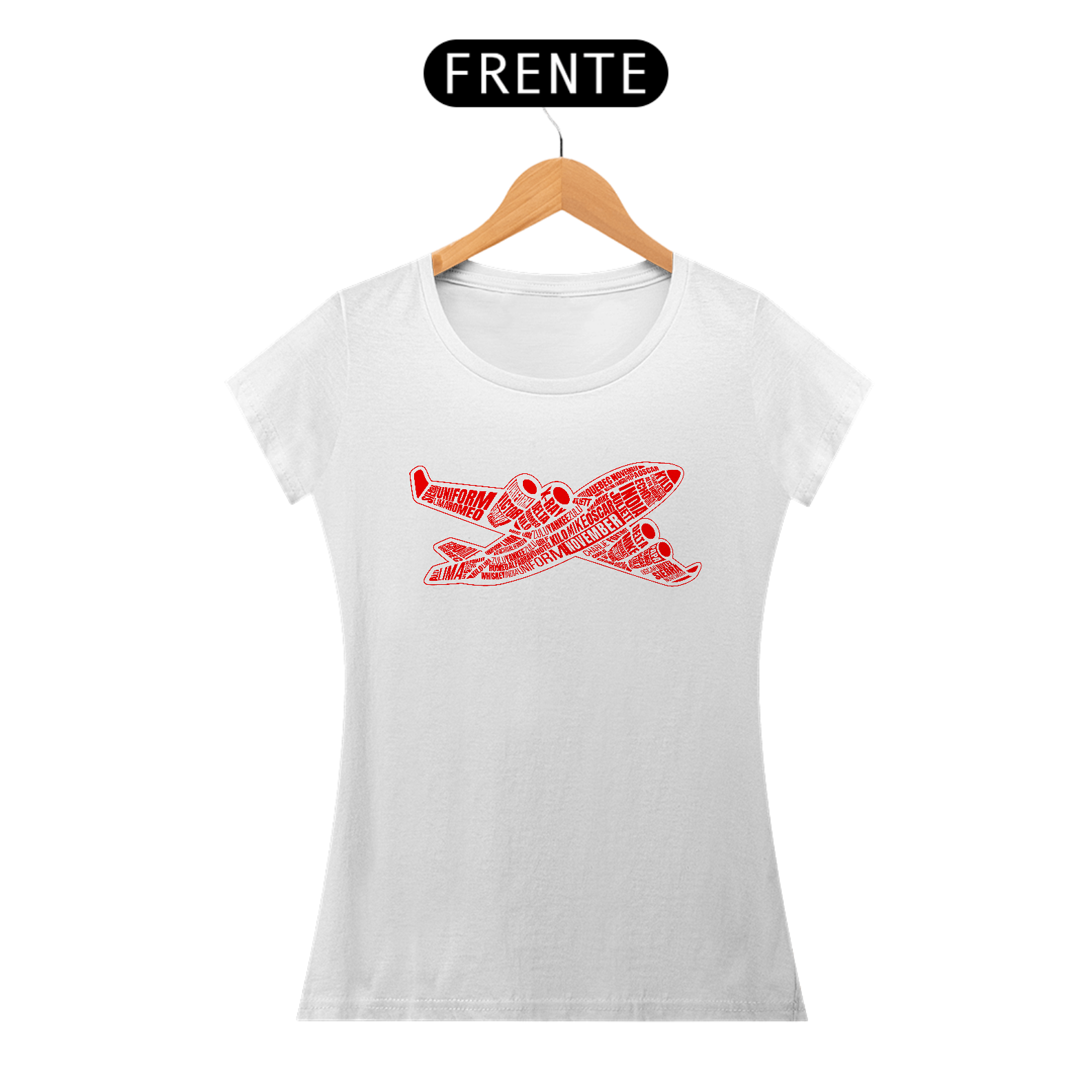 Camiseta com o alfabeto fonético aeronáutico seguindo a MCA-100-16