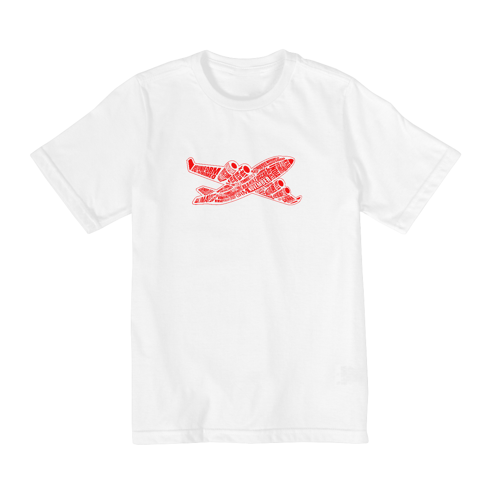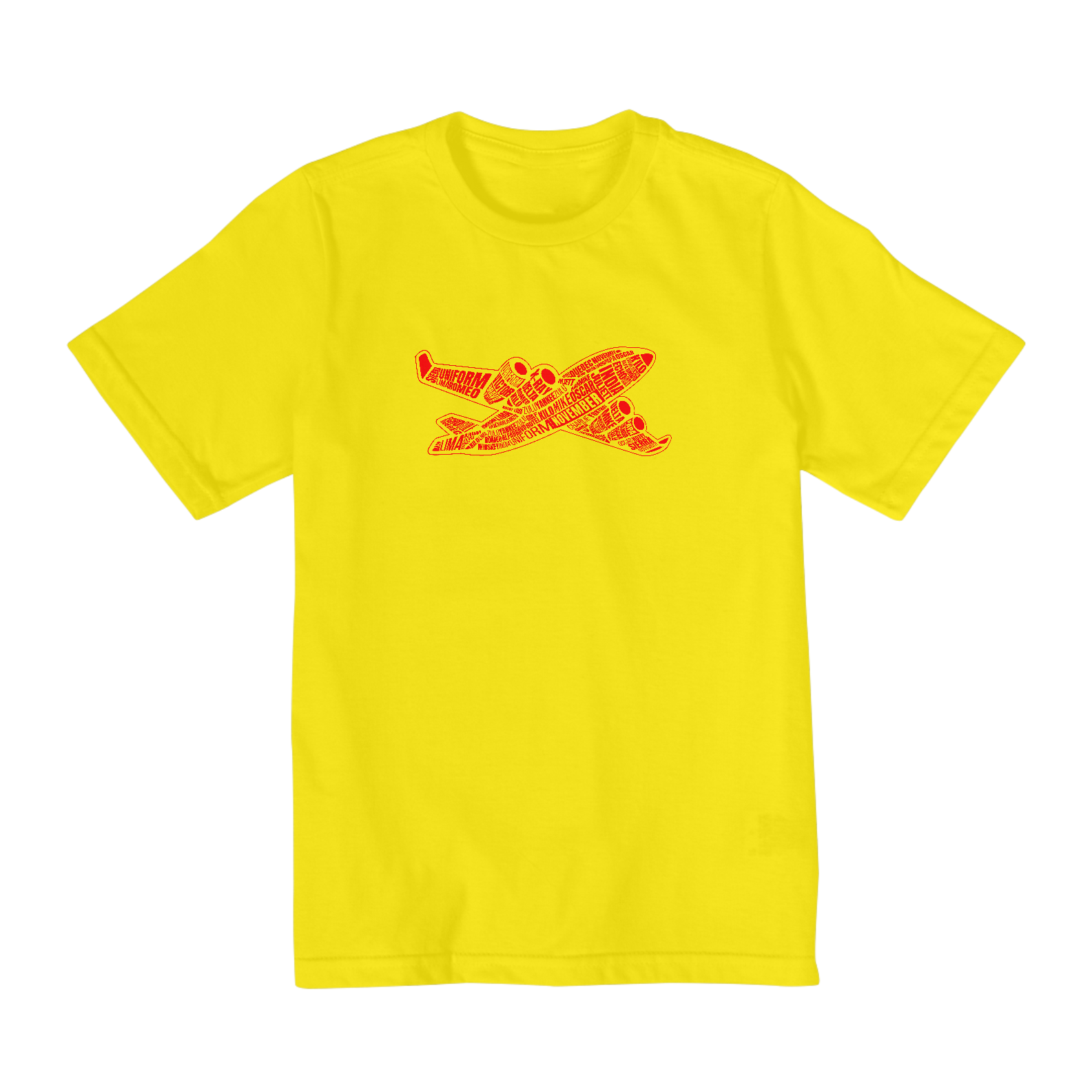 Camiseta com o alfabeto fonético aeronáutico seguindo a MCA-100-16