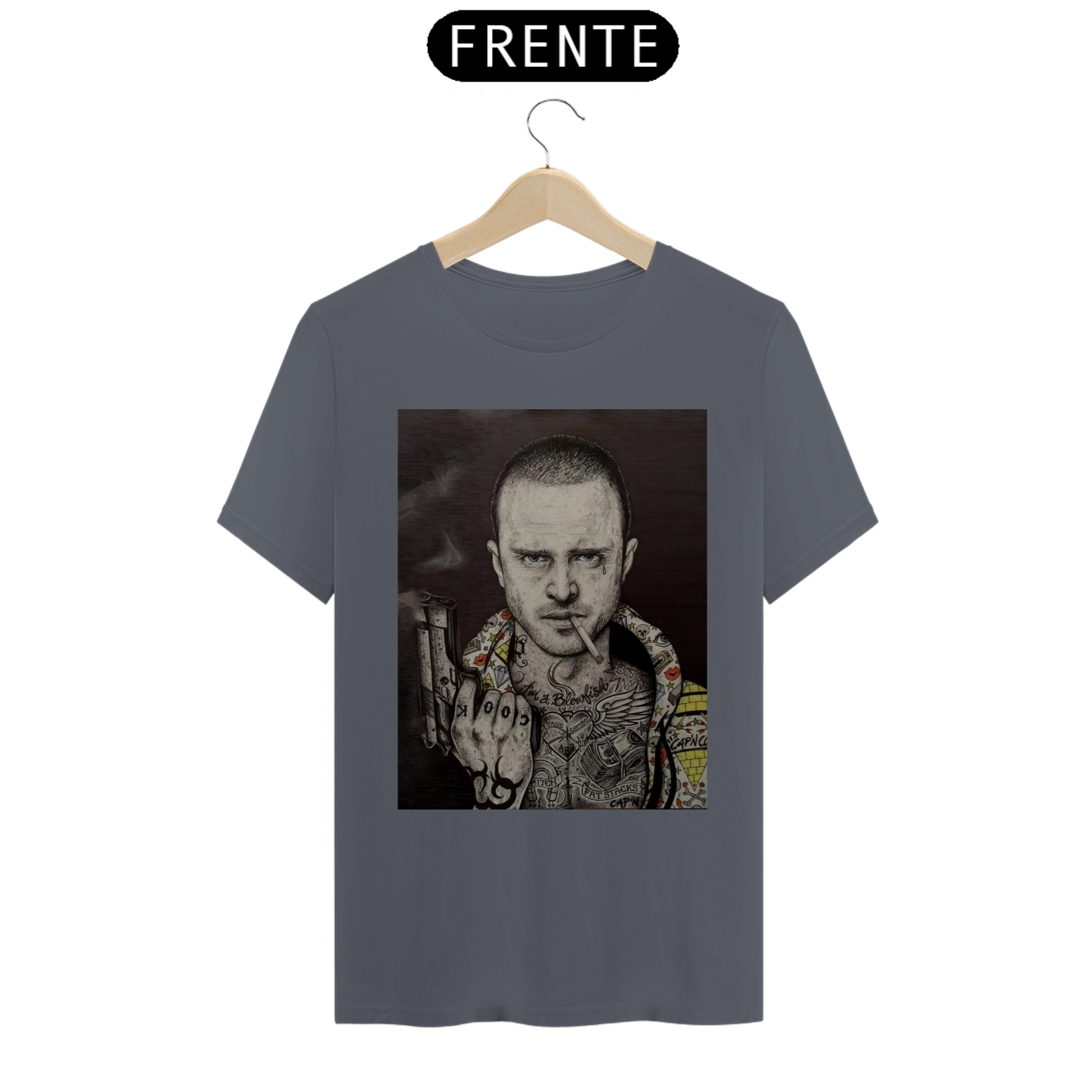 A estampa é produzida com impressão digital (DTG) e o processo é realizado com o que há de mais moderno no mercado, em impressora específica para malharia, imprimindo a arte com qualidade de definição excepcional e textura mínima sob a malha. Malha cardada fio 24.1, 100% algodão, acabamento reforçado na gola e nos ombros, gramatura 165 G. As cores da camiseta e da estampa podem variar de acordo com cada monitor. Devido ao processo de aquecimento para customização, as medidas podem sofrer variações de até 3cm.