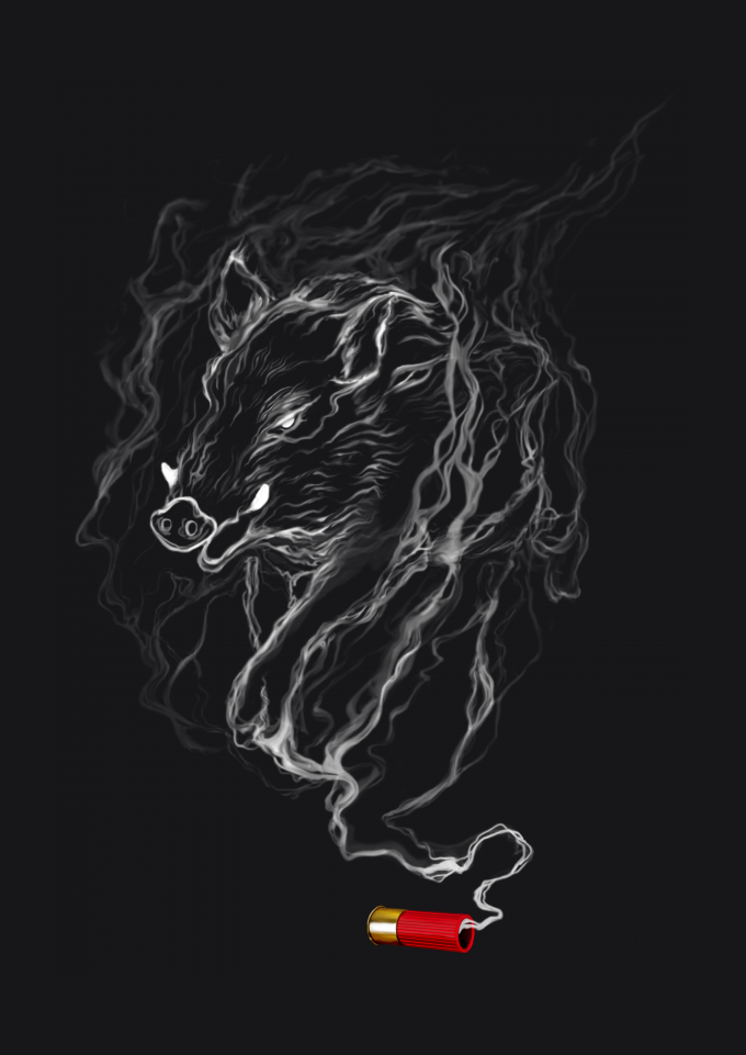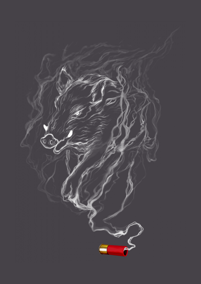 Camiseta Caçador de Javali, uso de arma para manejo desses animais selvagens.