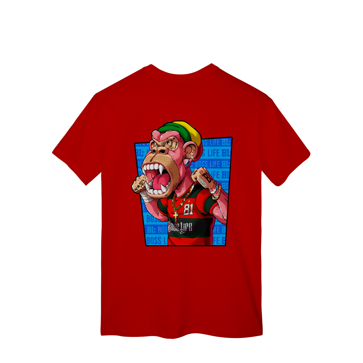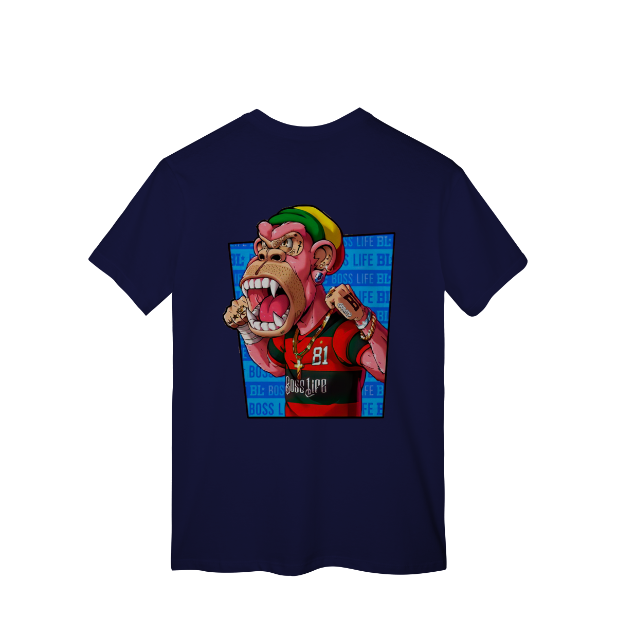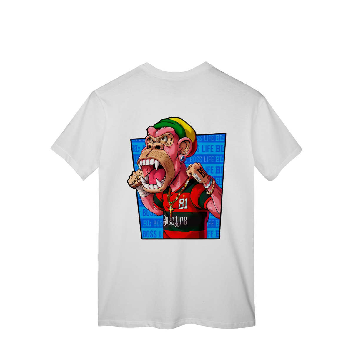 Para quem vive a intensidade da arquibancada. Esta estampa traz um personagem antropomórfico imponente, vestindo o manto sagrado com o histórico número 81. Com um design que exala força e determinação, o 'MacaGol' vem carregado de estilo streetwear: correntes de ouro, tatuagens de impacto e uma touca nas cores da Jamaica. É a união perfeita entre a paixão pelo futebol e a cultura das ruas. Mostre que sua torcida tem voz e presença."