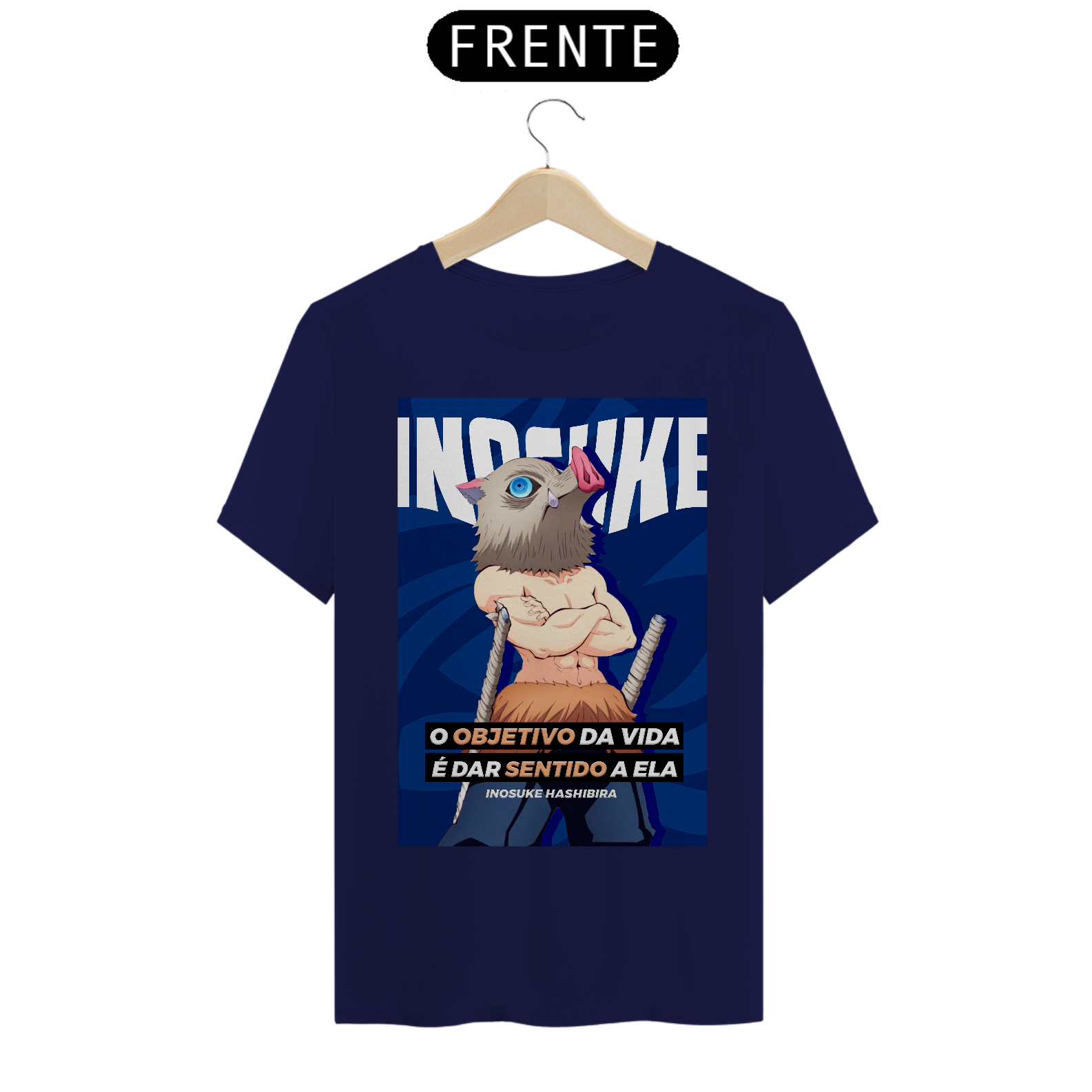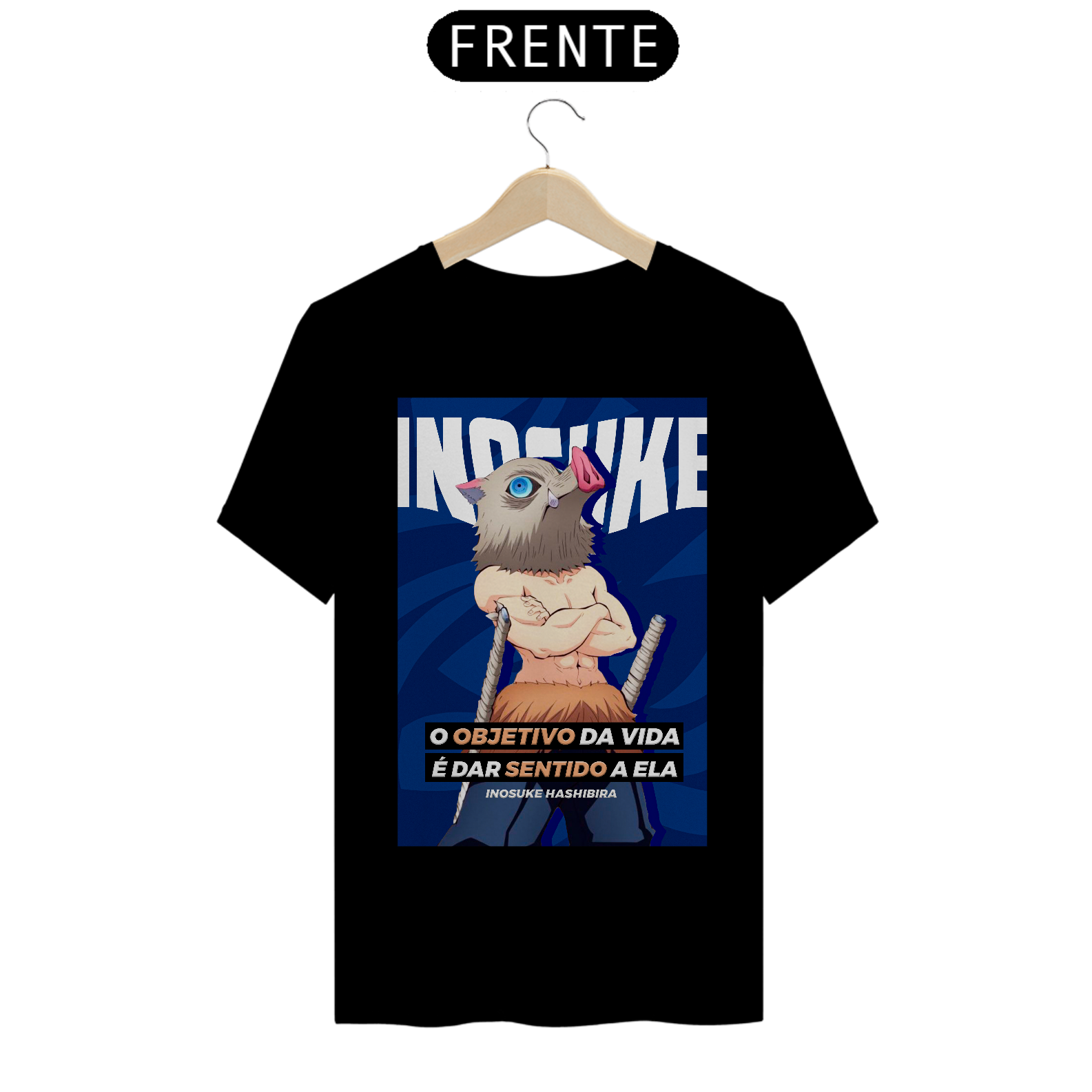 T-SHIRT CLASSIC DE COR PRETA, BRANCA E TONS DE AZUIS ESCUROS DO INOSUKE HASHIBIRA.