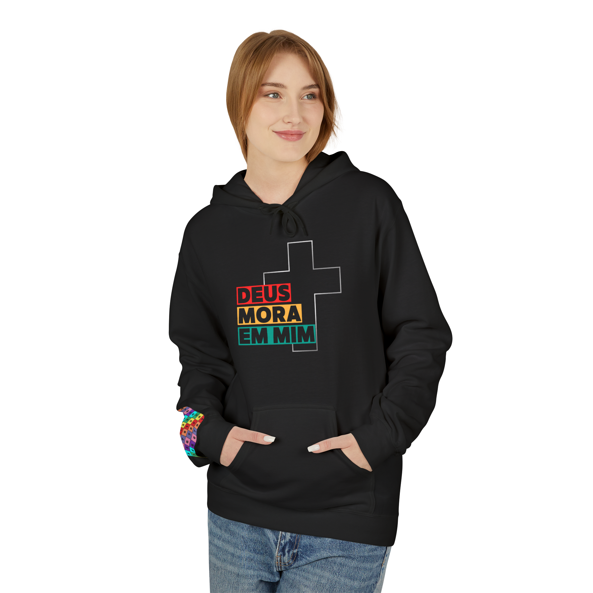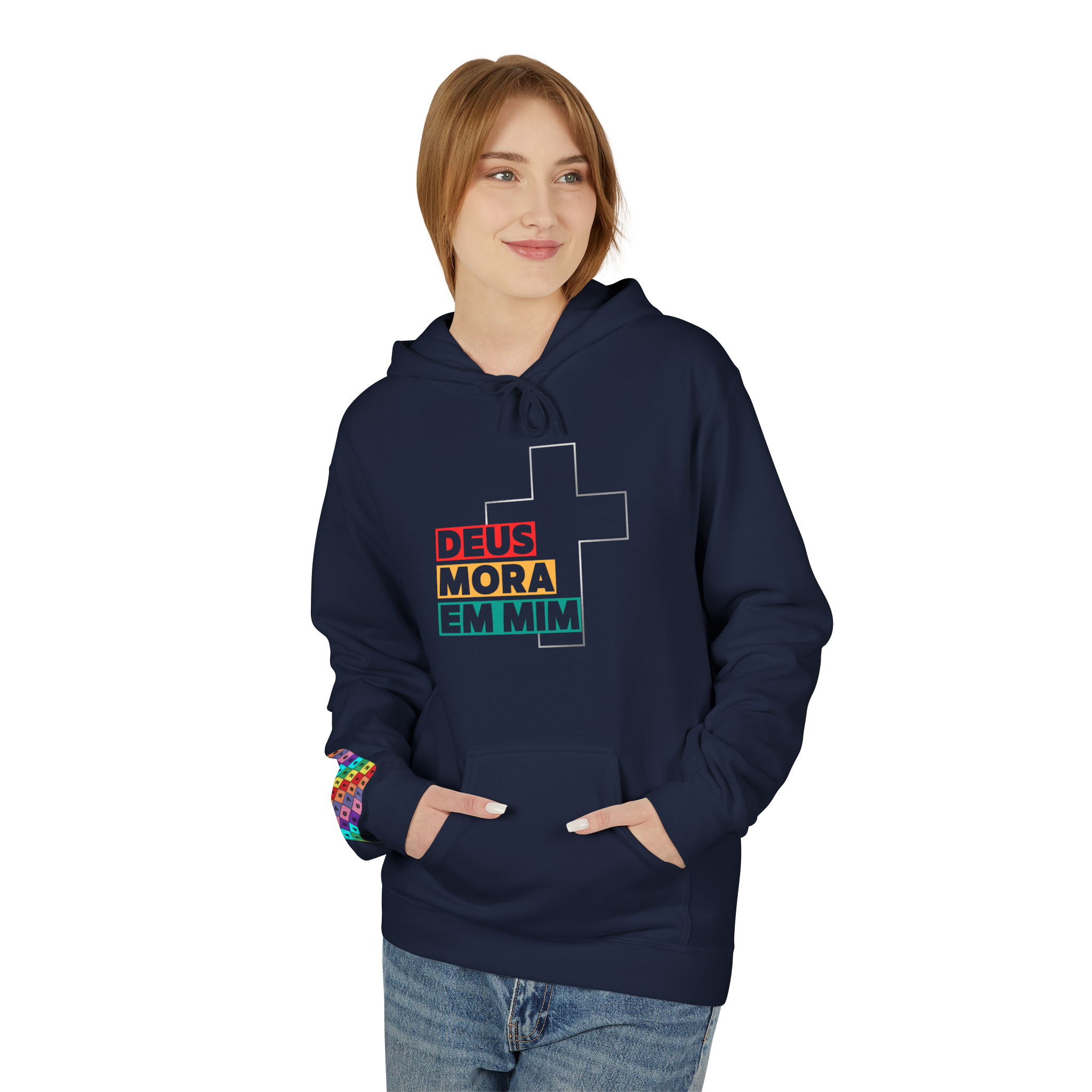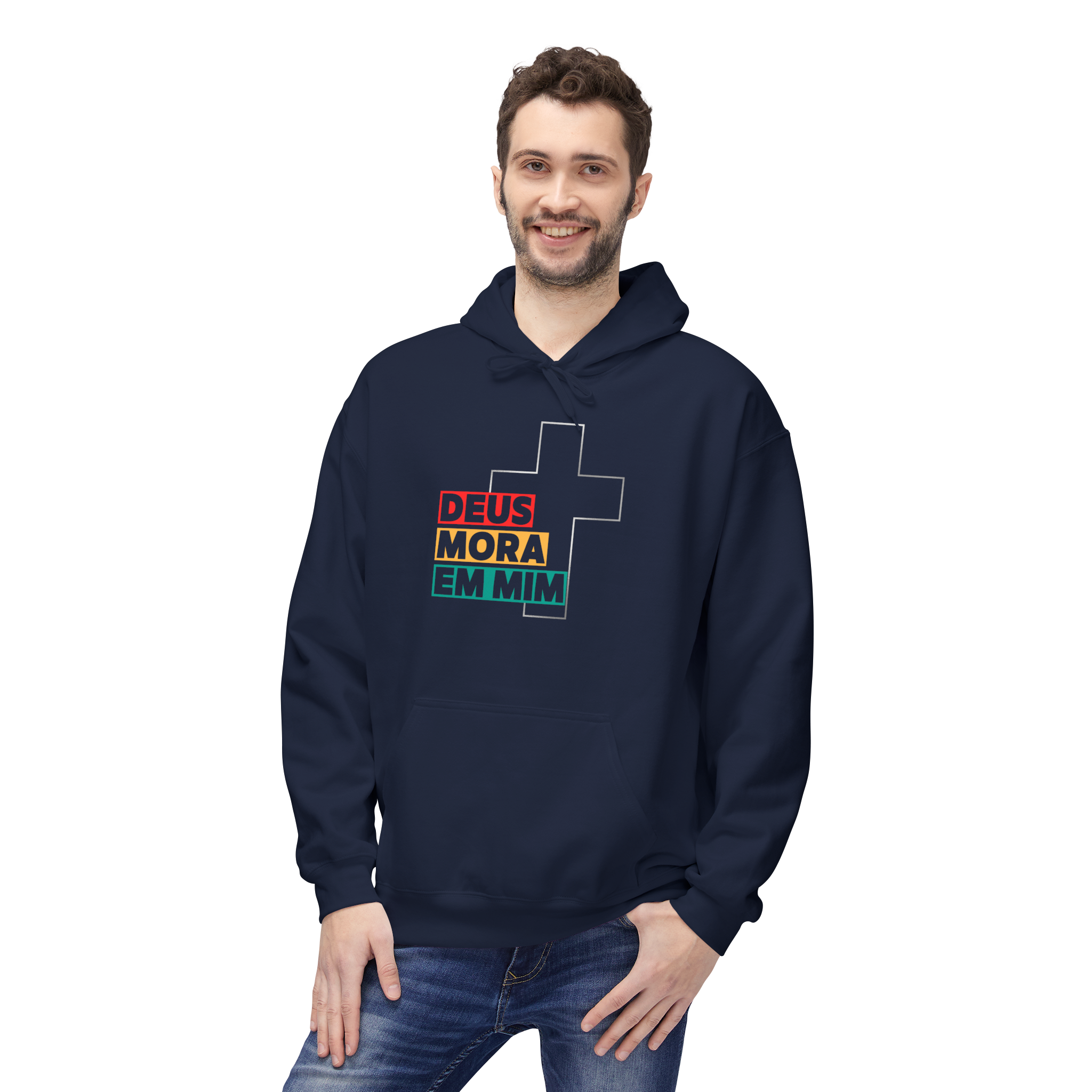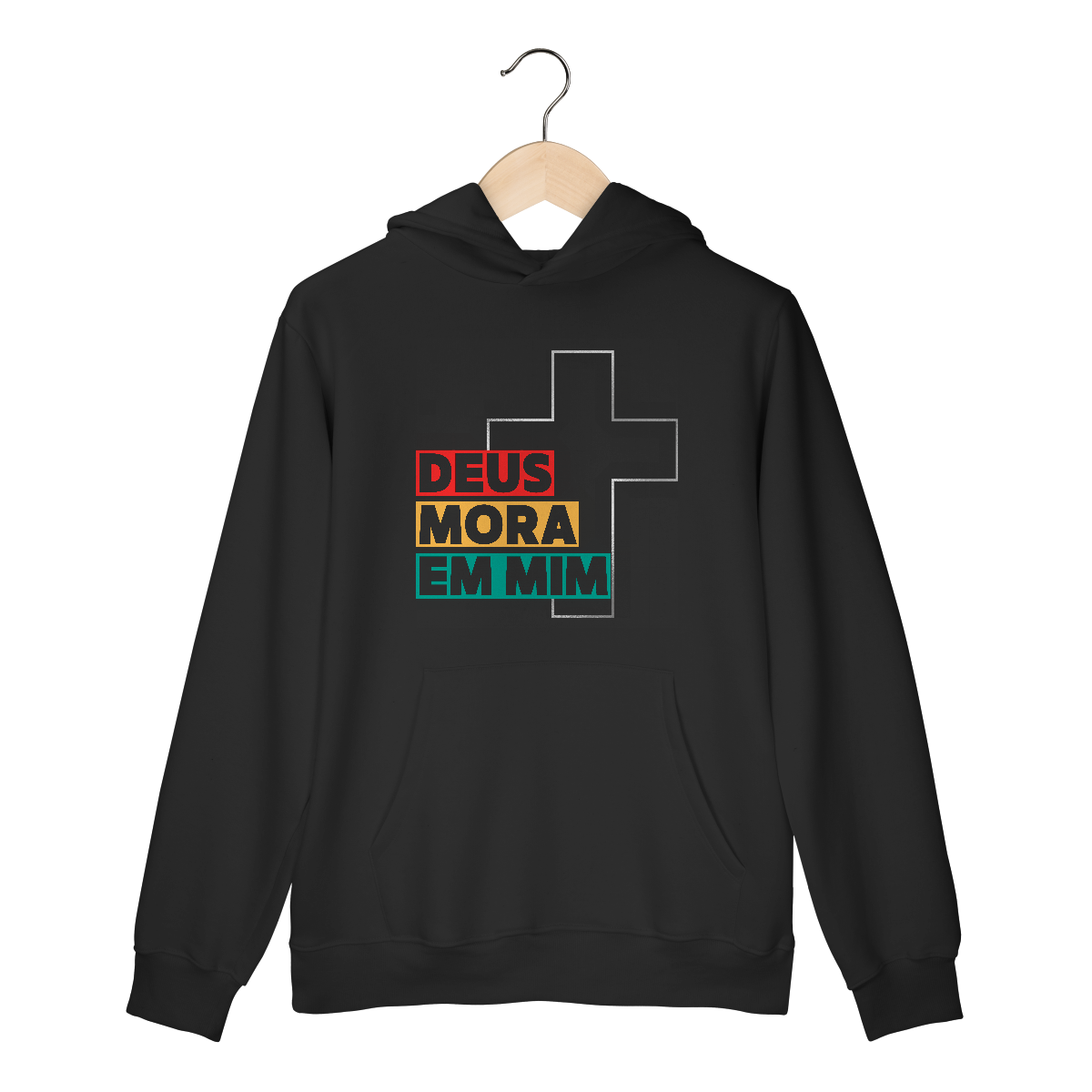 Estilo, cor e fé em uma só peça! O moletom “Deus Mora em Mim” é vibrante e cheio de personalidade. Com cruz minimalista e mensagem impactante, ele é ideal para quem quer se destacar e espalhar a luz de Cristo mesmo nos dias frios.