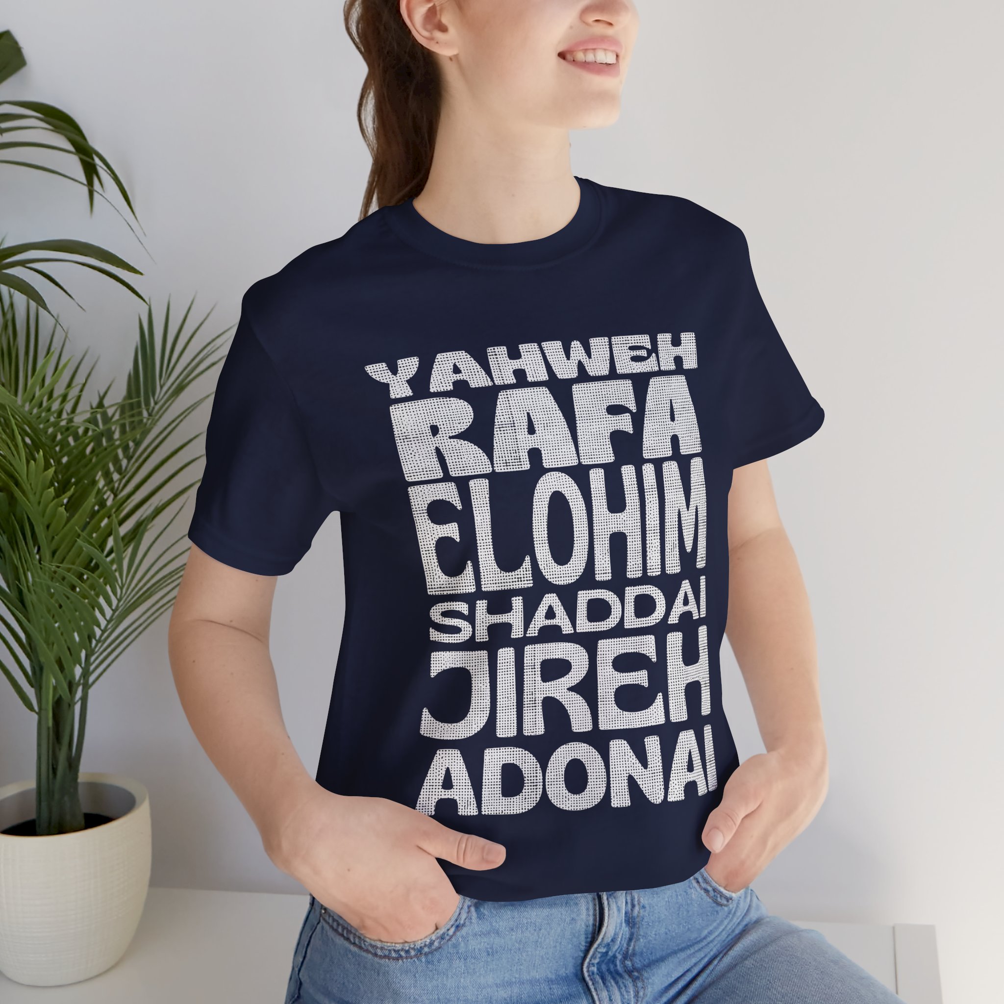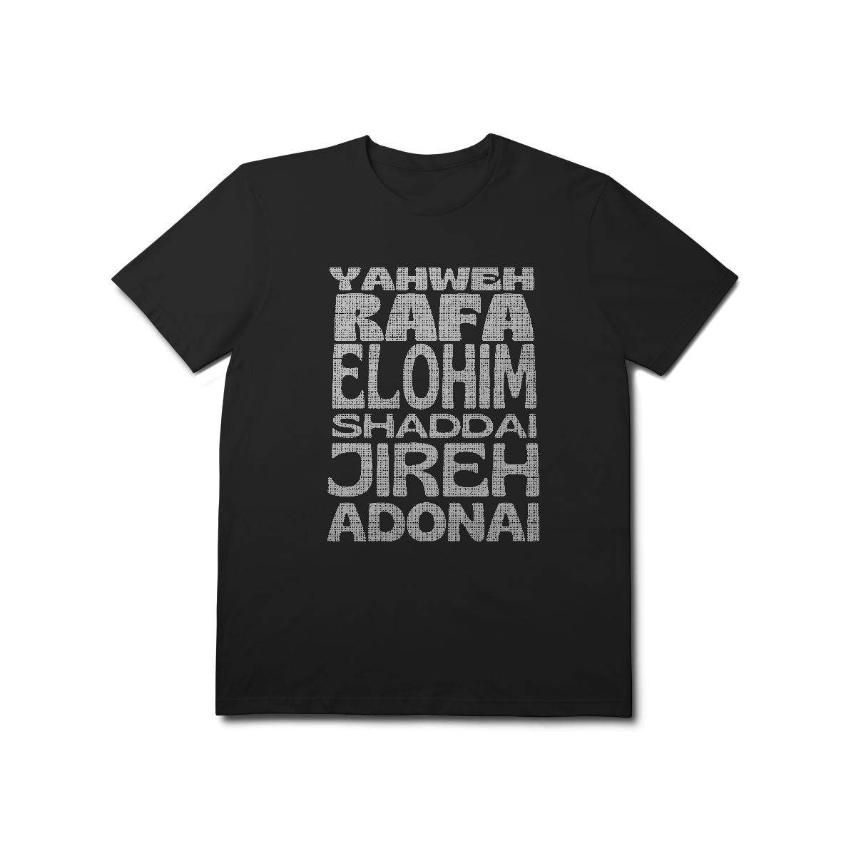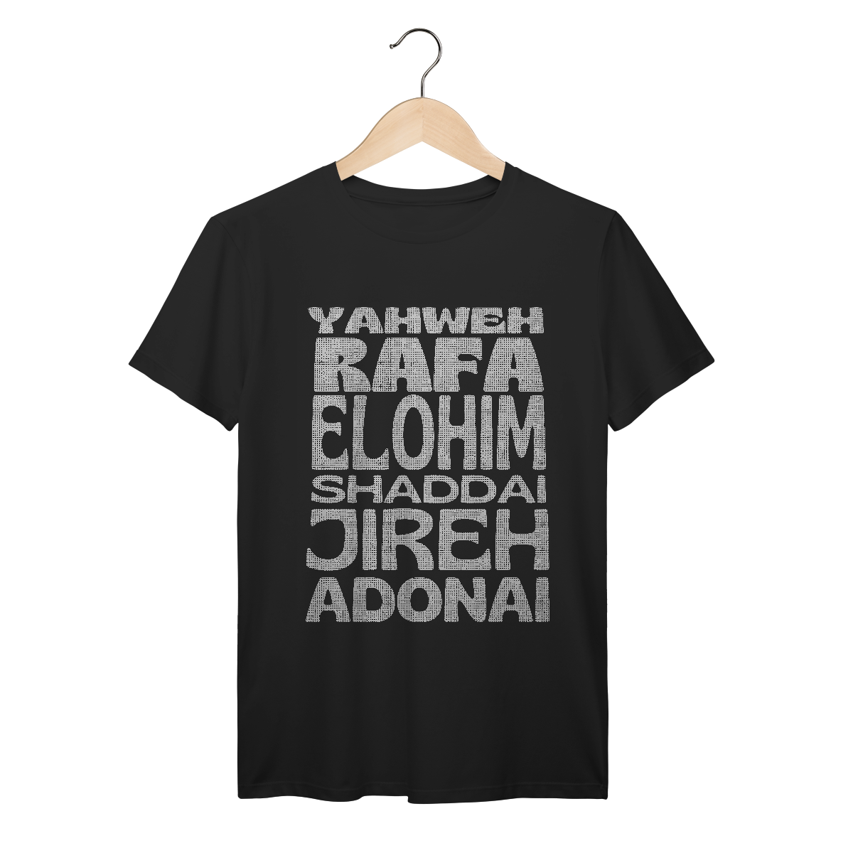 Carregue com você os poderosos nomes de Deus! Esta camiseta apresenta um design moderno com os principais nomes do Senhor, destacando Seu poder e presença em nossas vidas. Uma peça de impacto para expressar sua fé com estilo e identidade.