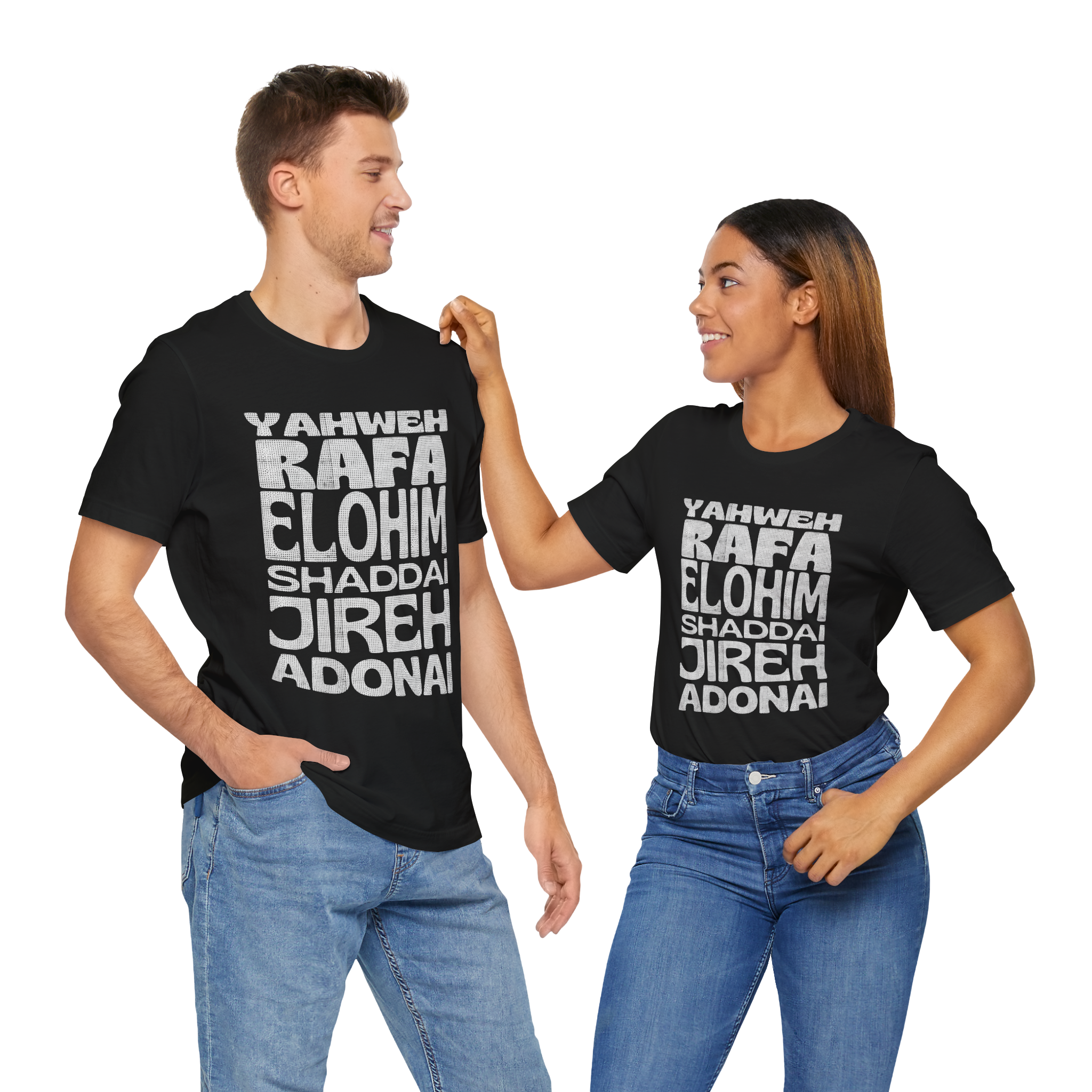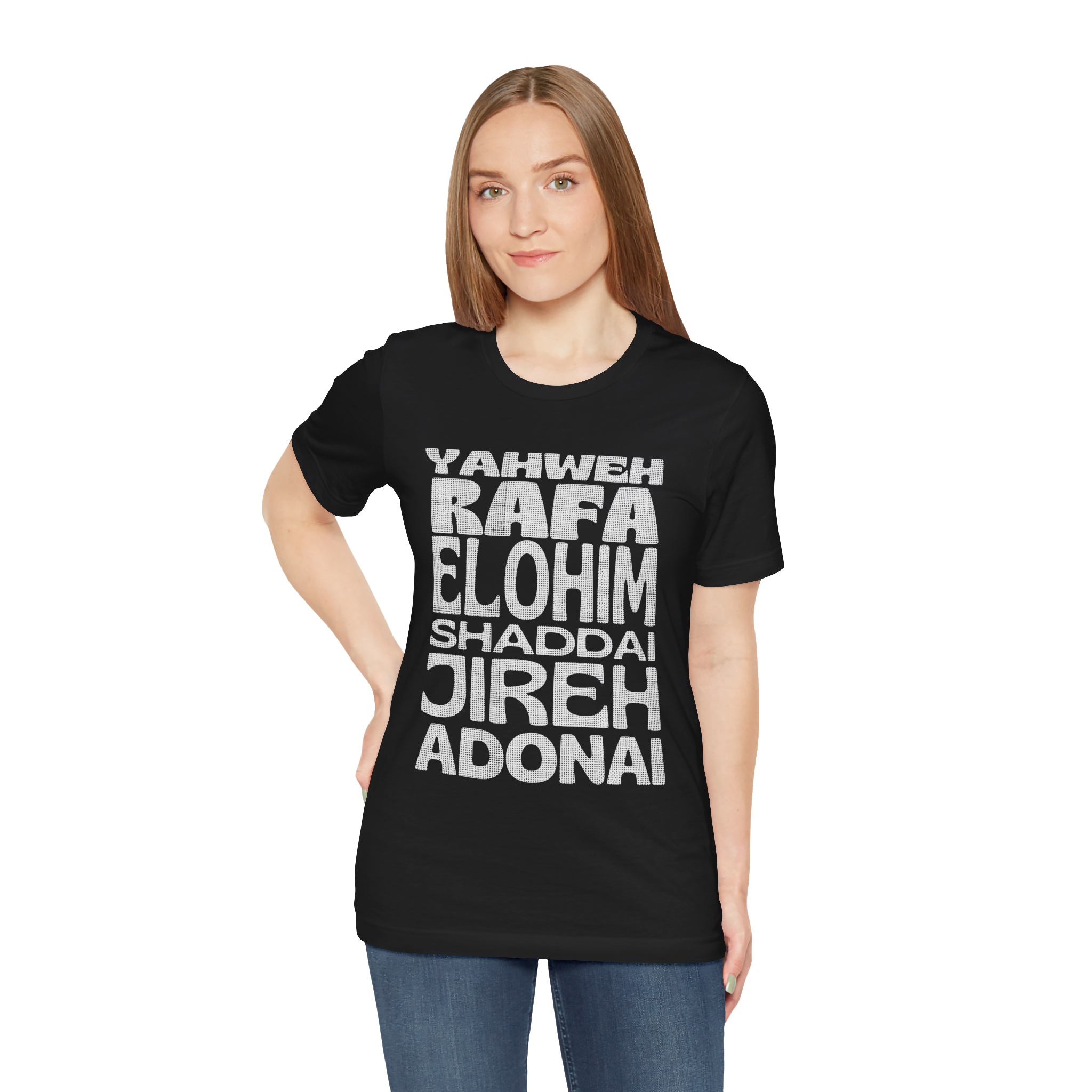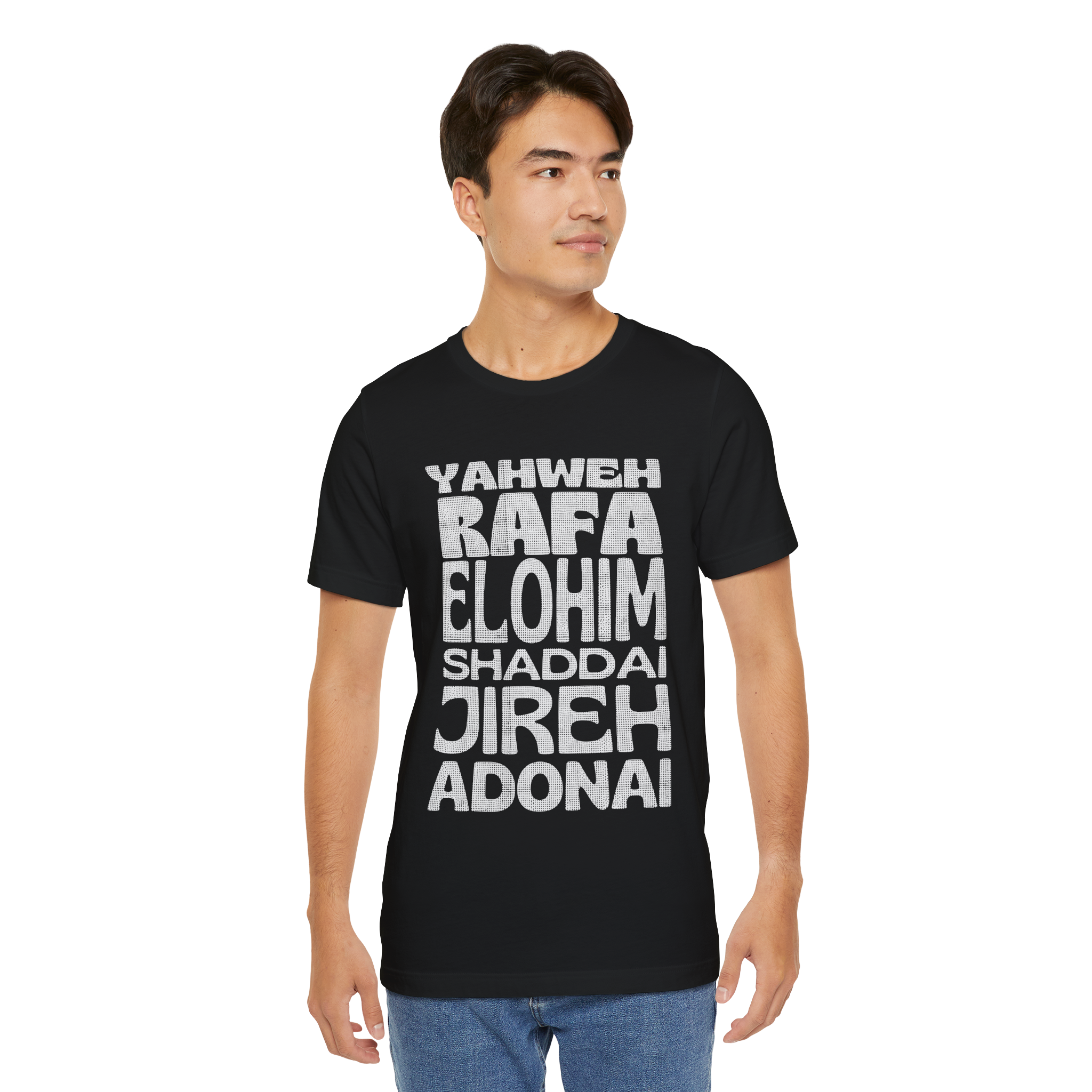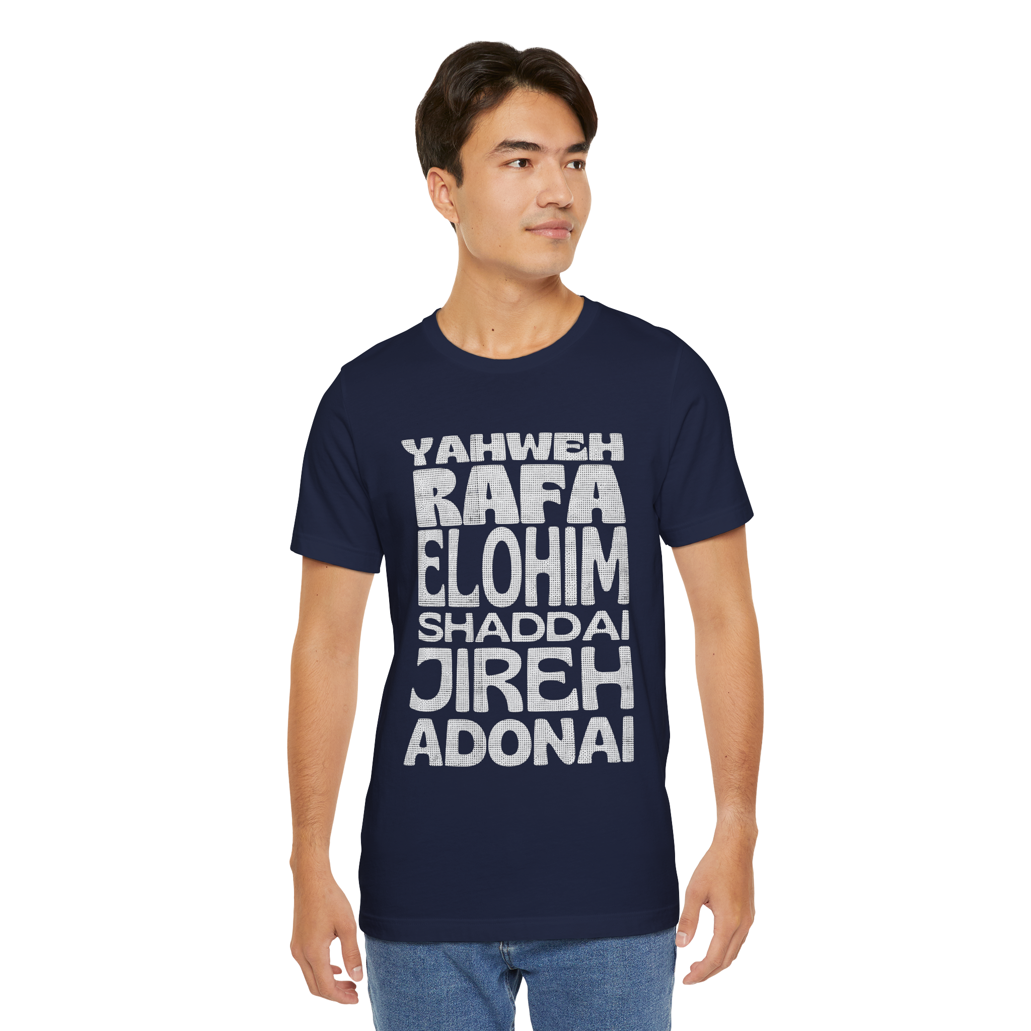 Carregue com você os poderosos nomes de Deus! Esta camiseta apresenta um design moderno com os principais nomes do Senhor, destacando Seu poder e presença em nossas vidas. Uma peça de impacto para expressar sua fé com estilo e identidade.