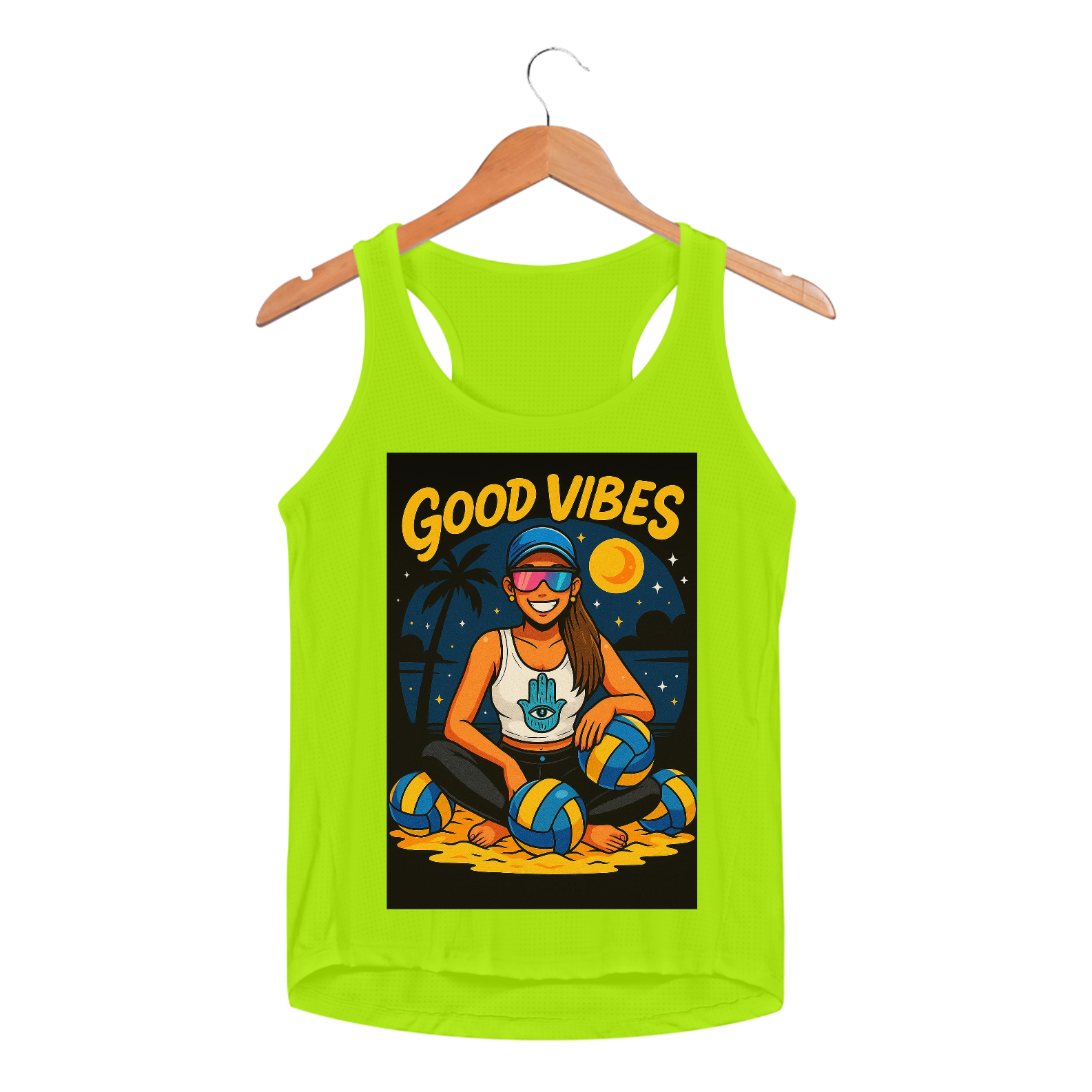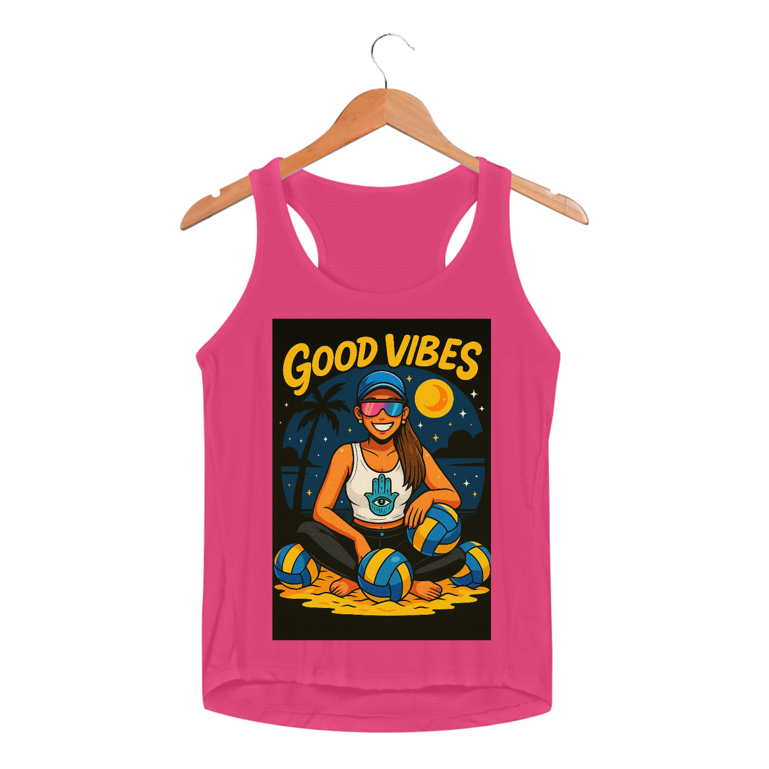 Se tem uma camisa que transmite aquele astral leve, sorriso no rosto e dobradinha de saque + positividade, essa regata é a bola da vez! Boa vibração encontra atitude de jogo — e dá match em qualquer clima de verão com vibe total de rede e ressaca de alegria!