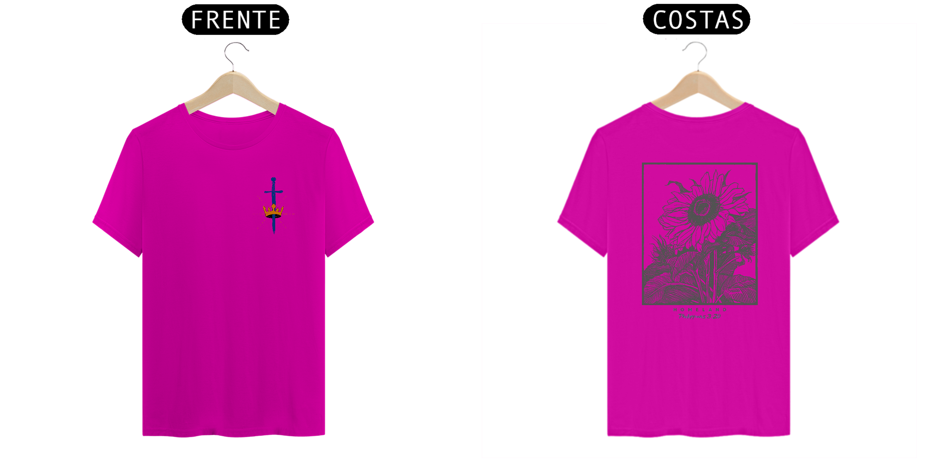 Cores do produto: Como cada tela de computador ou celular tem seu próprio jeito de mostrar cores, então a cor da sua camiseta e da estampa pode ser um pouco diferente do que você viu online.