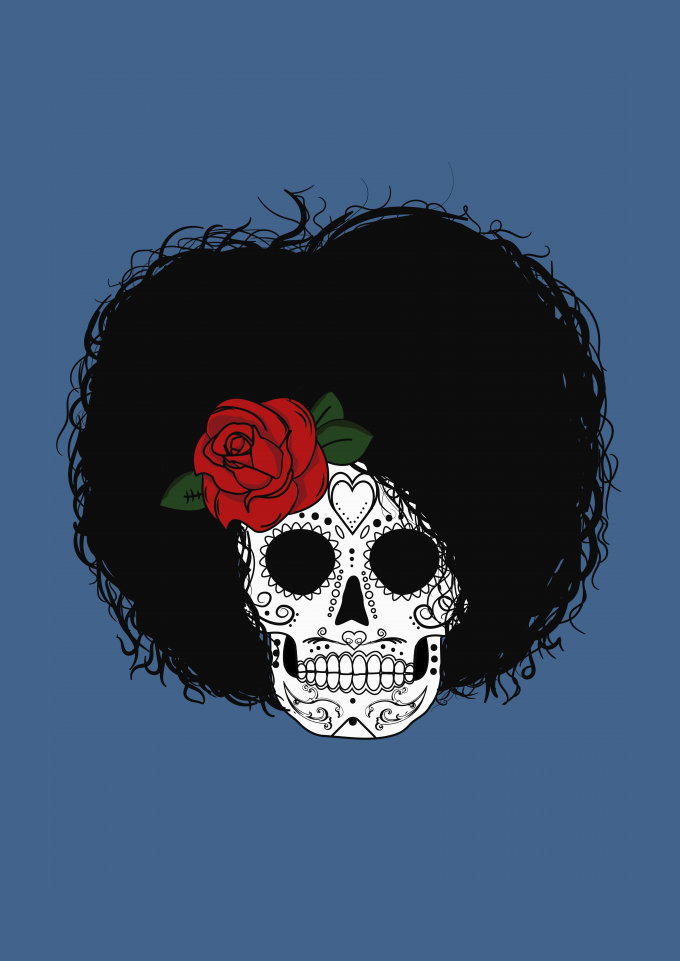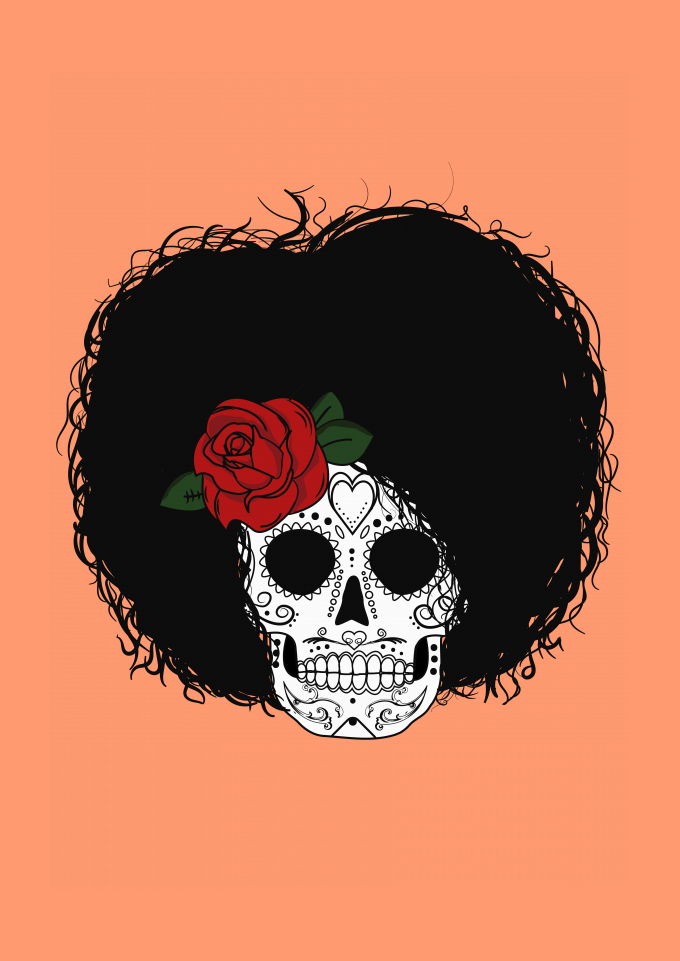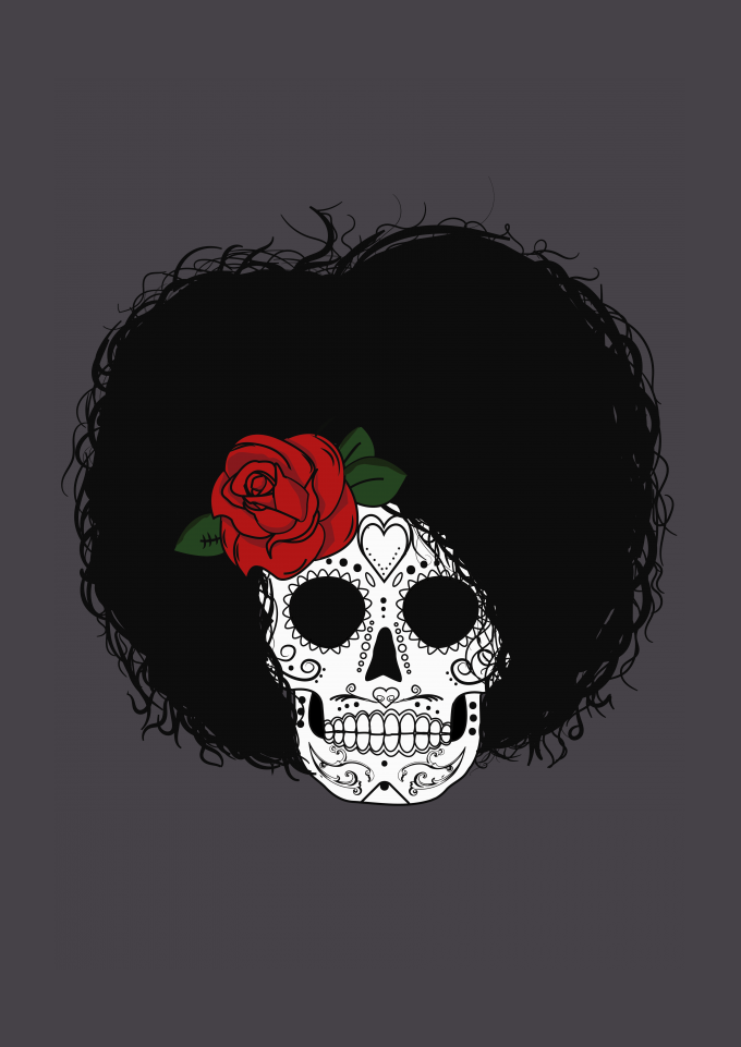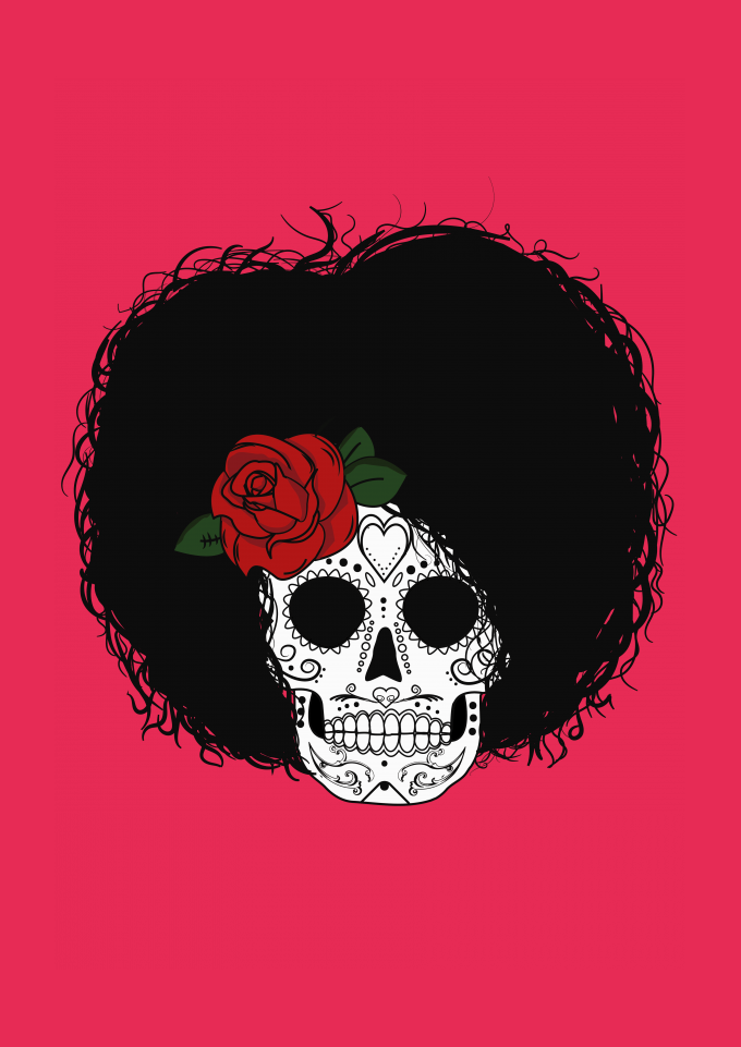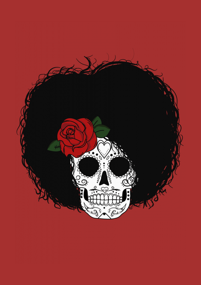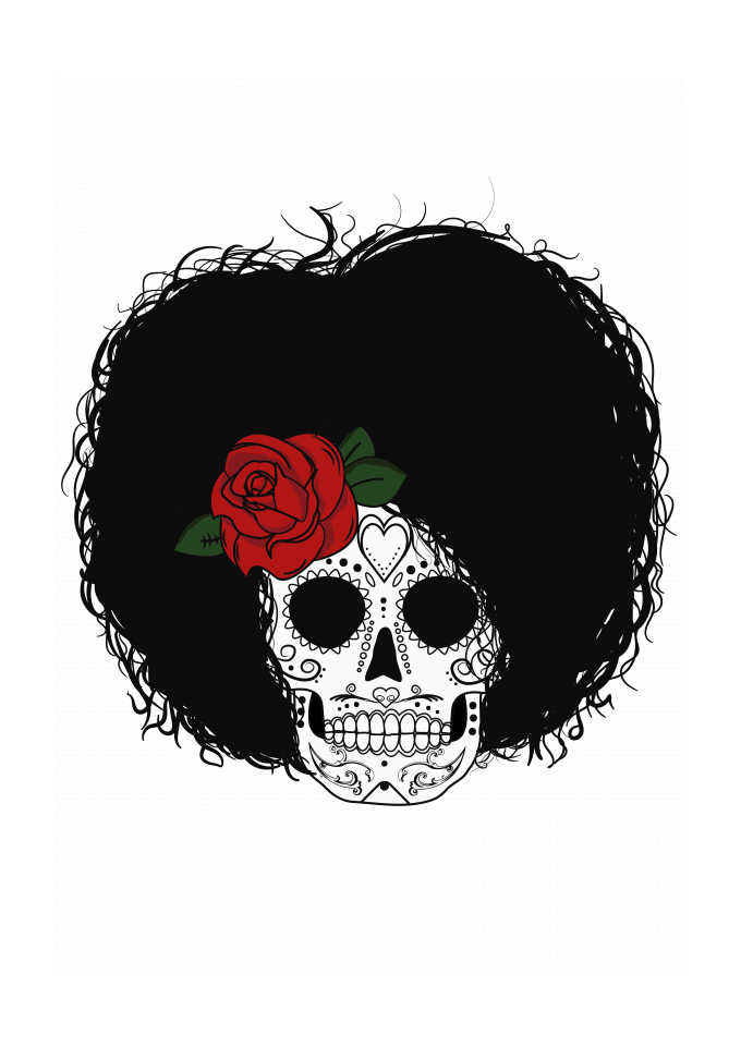 Caveira Mexicana com Cabelo Afro (Black Power)