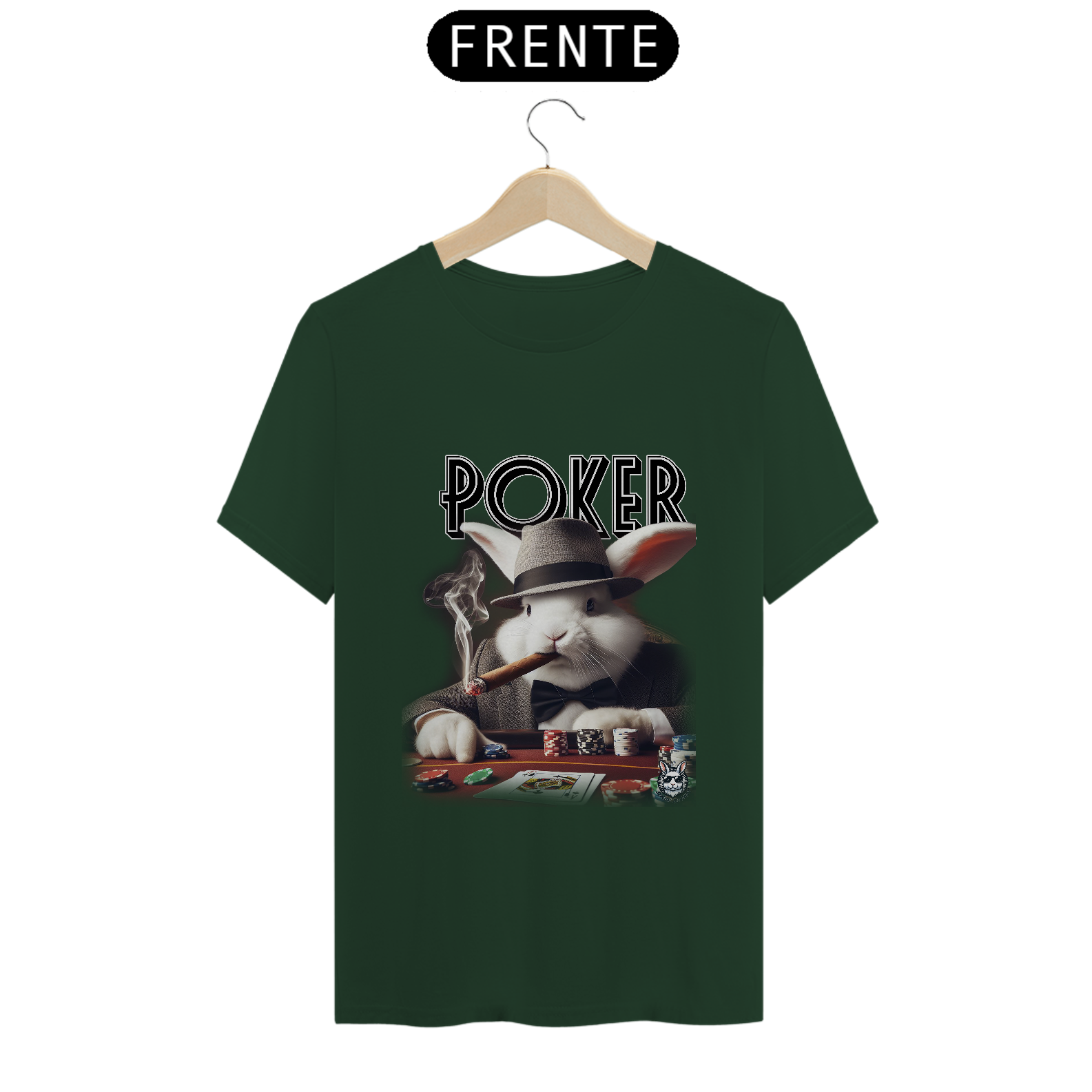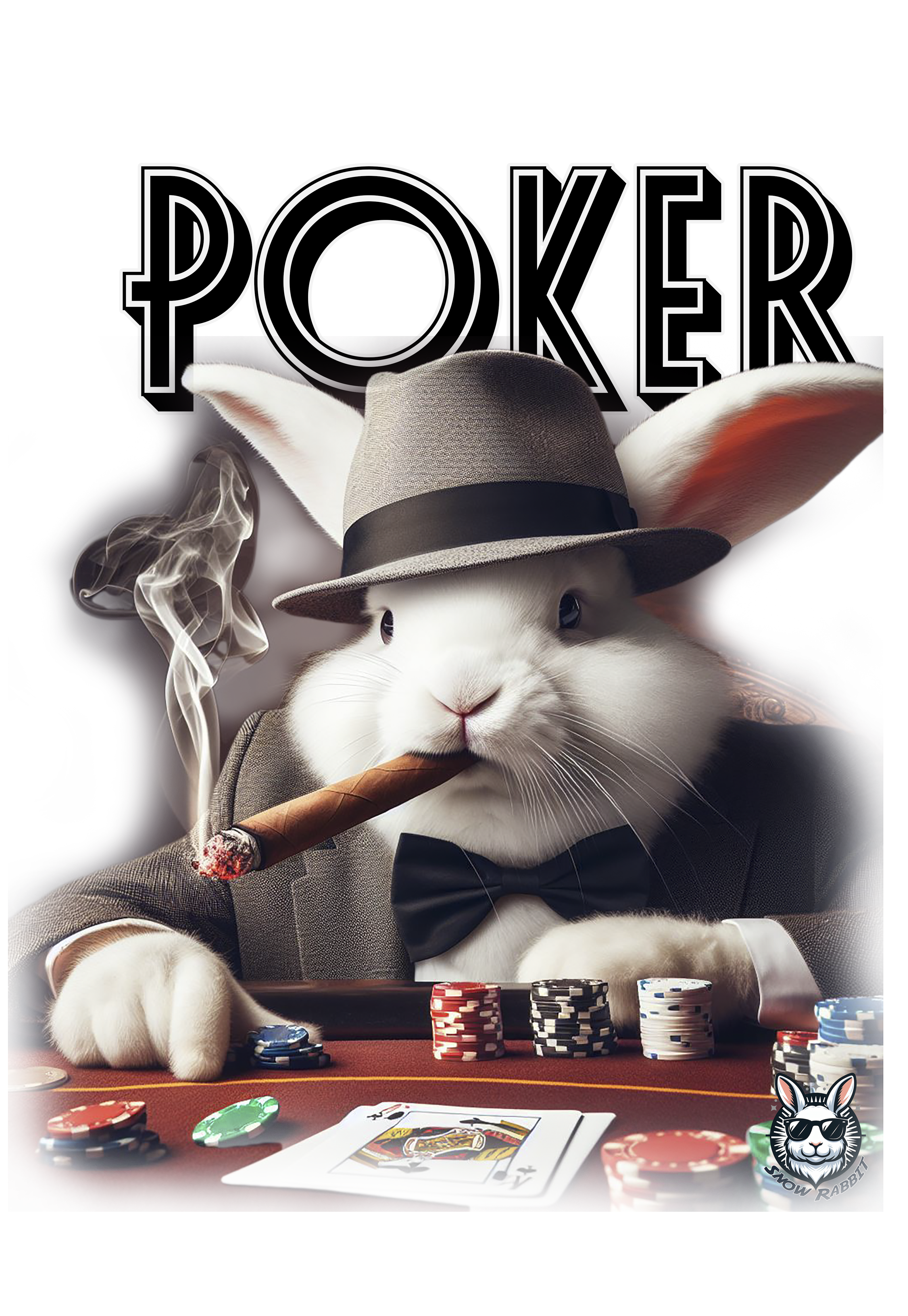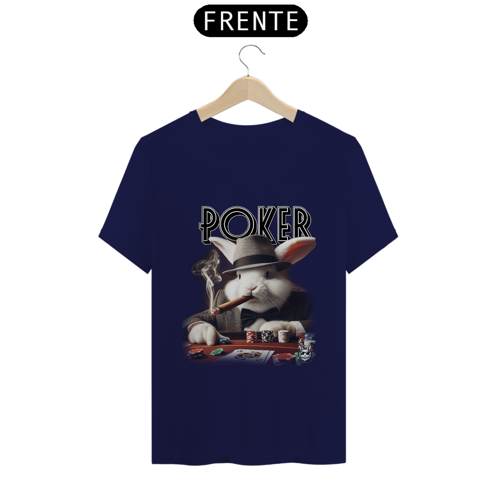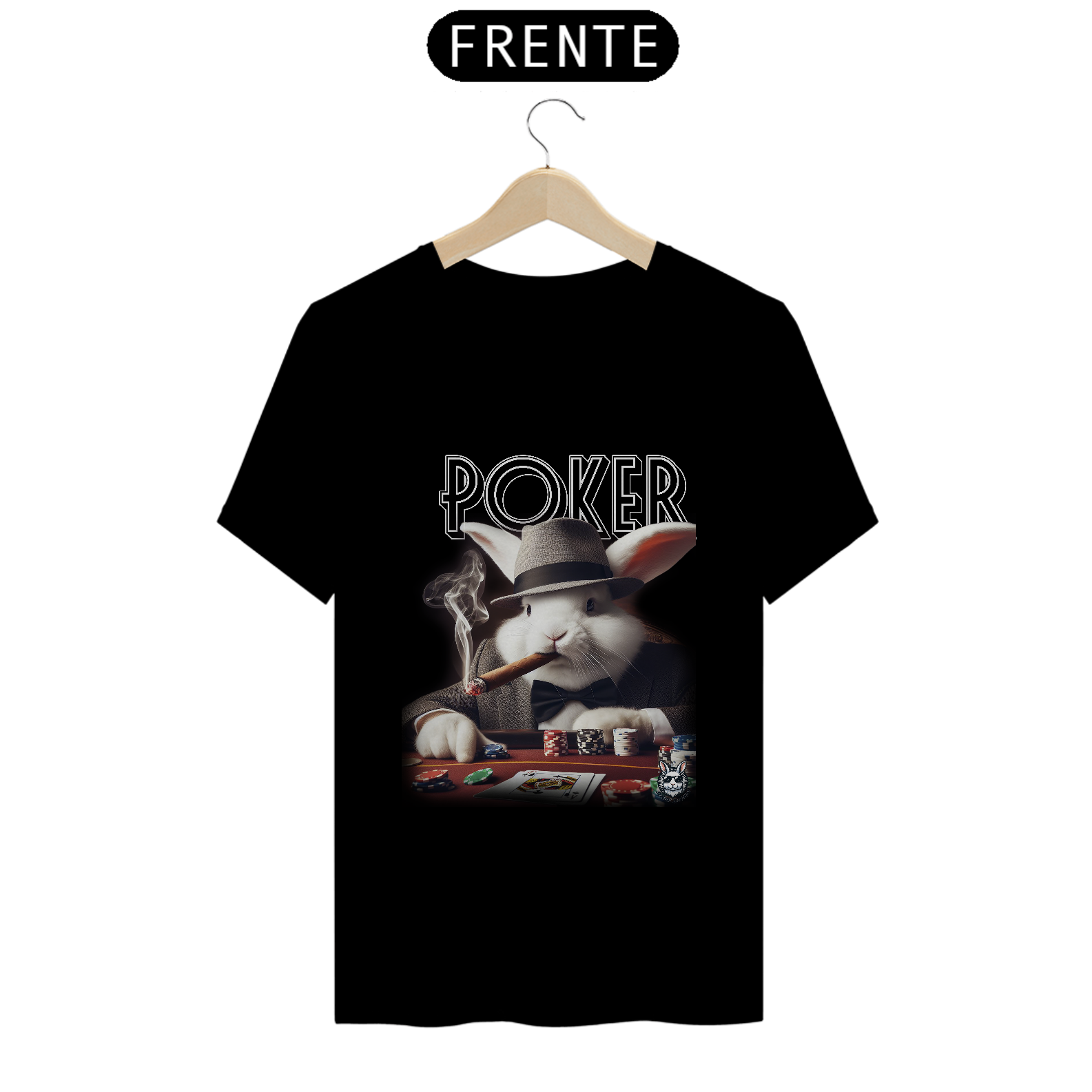 Jogue com estilo! Camiseta exclusiva com estampa Snow Rabbit jogador de poker. Mostre sua paixão pelo jogo com elegância. Garanta já a sua!