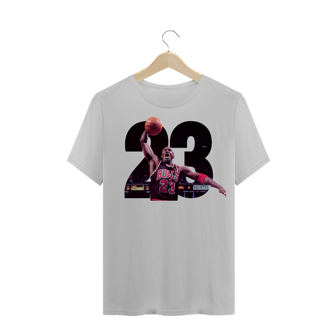 Camiseta Jordan personalizada pela Xu Modas, com o Michael Jodan enterrando saindo onúmero 23