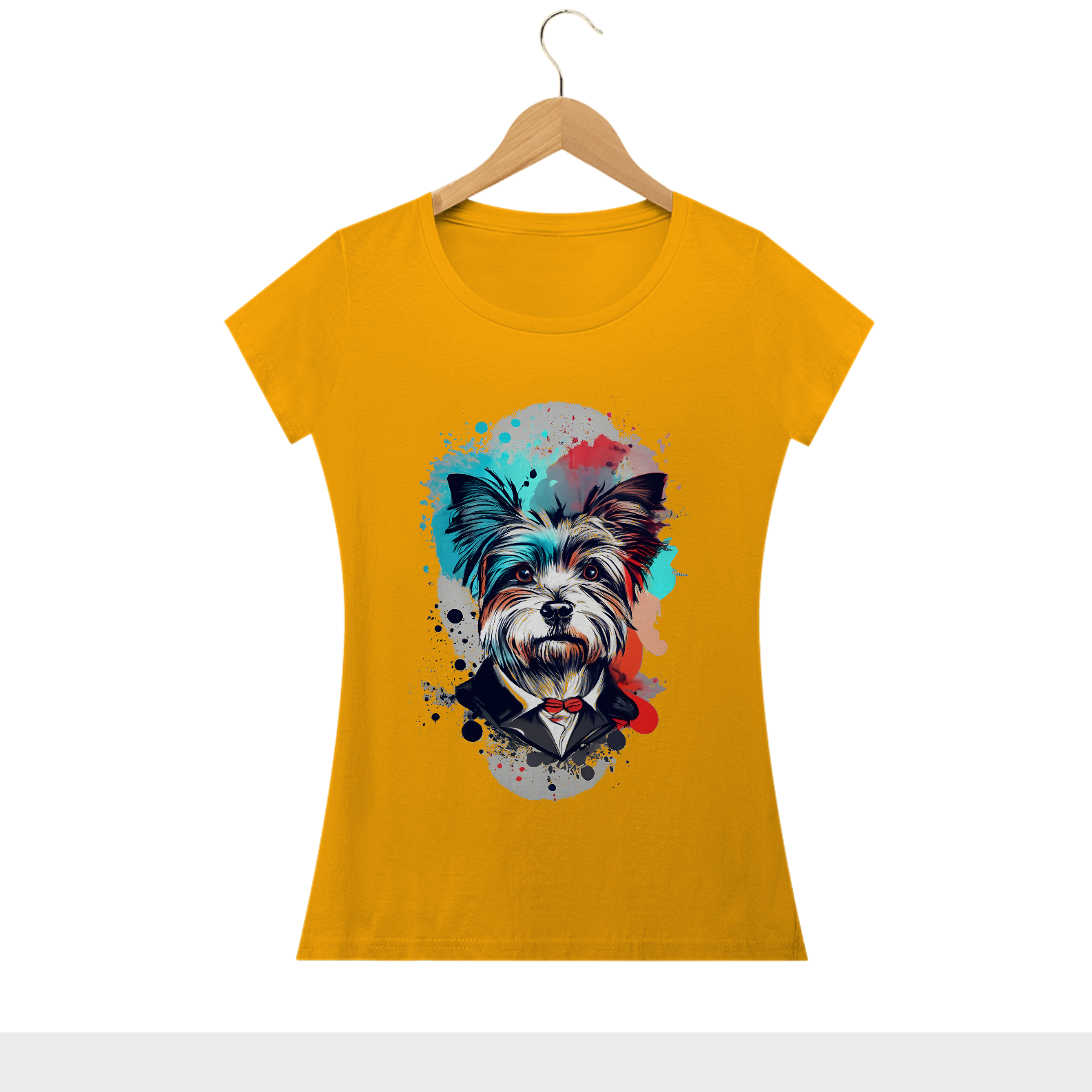 A camisa "York Gentleman" apresenta uma estampa charmosa de um yorkshire vestindo uma gravata, trazendo um toque de elegância canina ao seu guarda-roupa. Ideal para os amantes de cachorros que desejam expressar seu amor por seus pets de maneira sofisticada e descontraída.