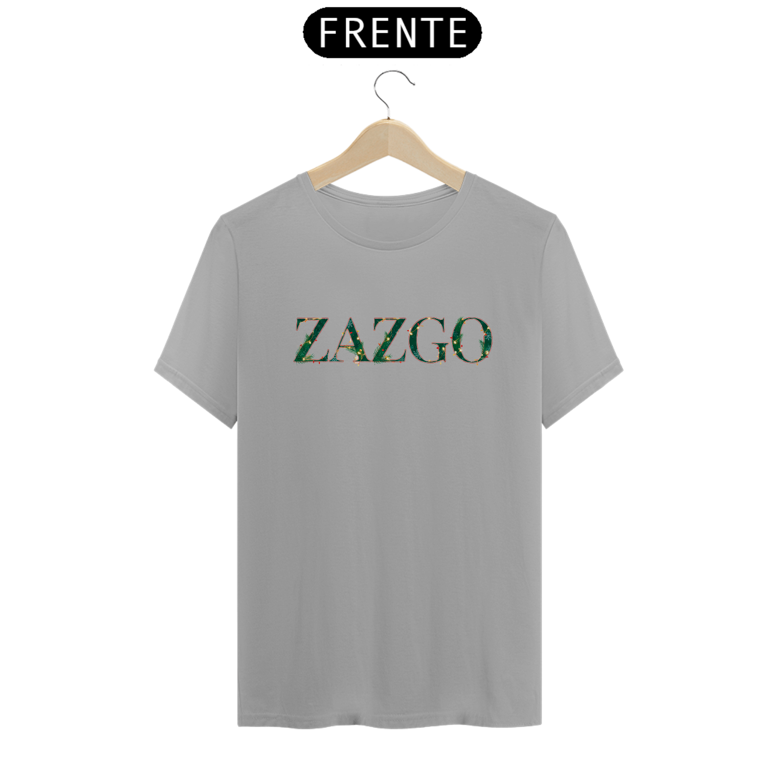 O design traz o nome ZAZGO com um toque sutil de neve, detalhes iluminados e elementos natalinos elegantes, mantendo um visual limpo, sofisticado e versátil para qualquer ocasião.