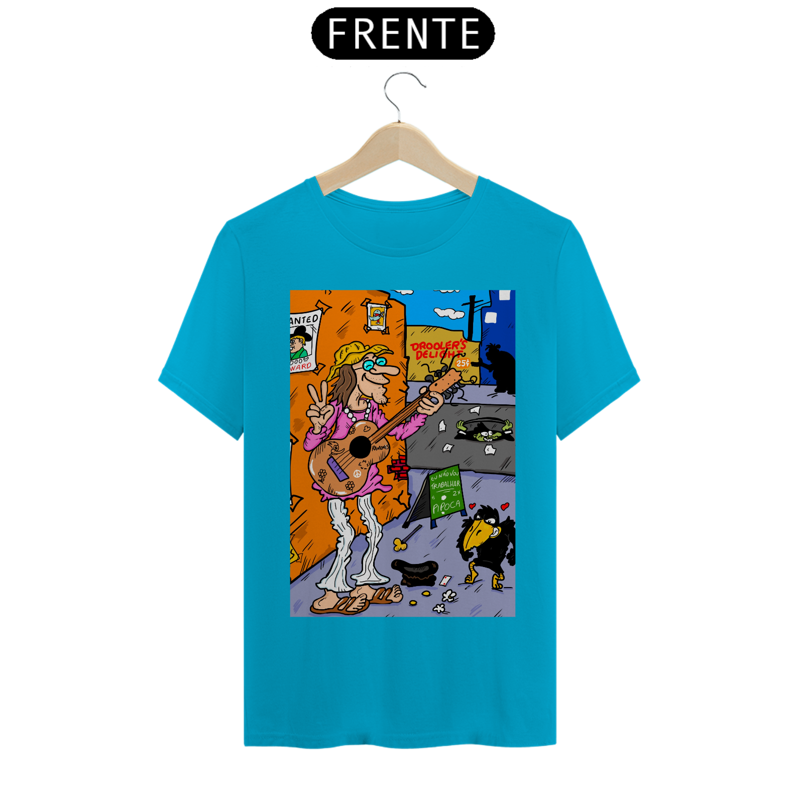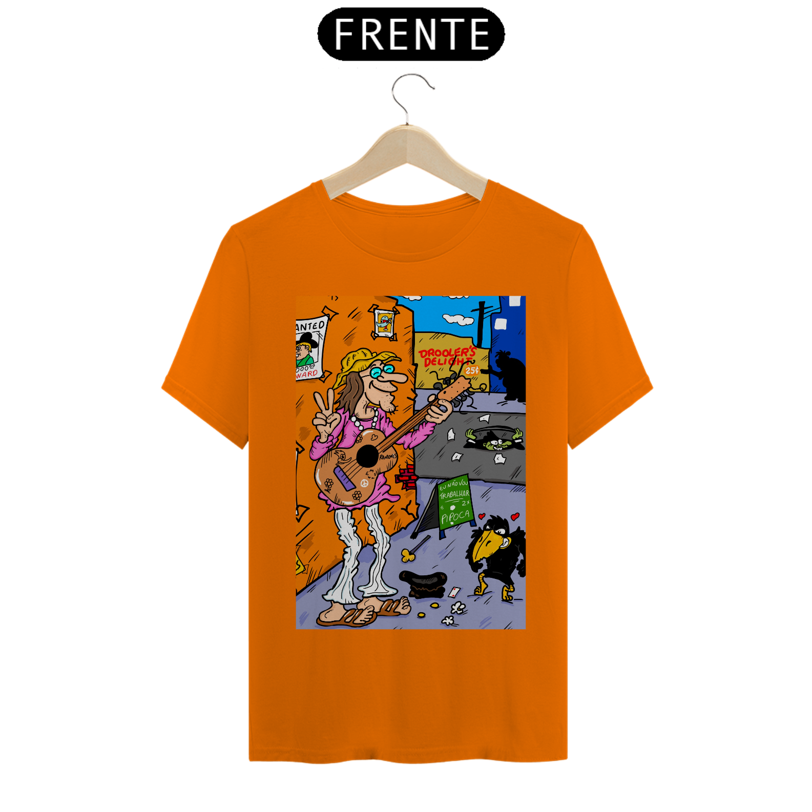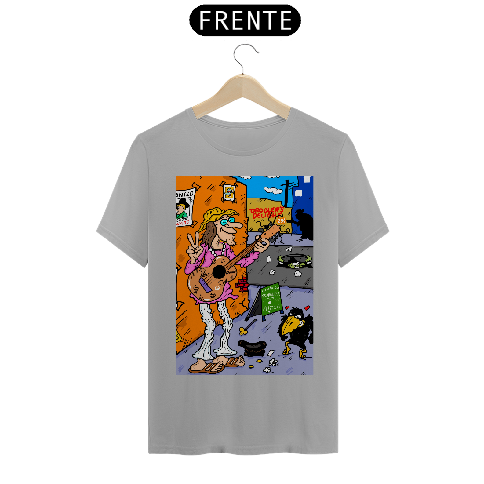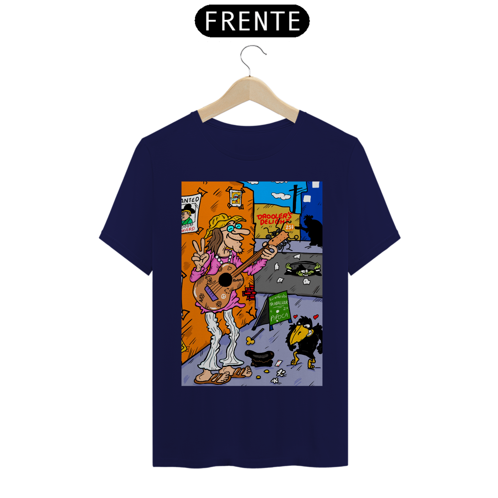 Cores do produto: Como cada tela de computador ou celular tem seu próprio jeito de mostrar cores, então a cor da sua camiseta e da estampa pode ser um pouco diferente do que você viu online.
