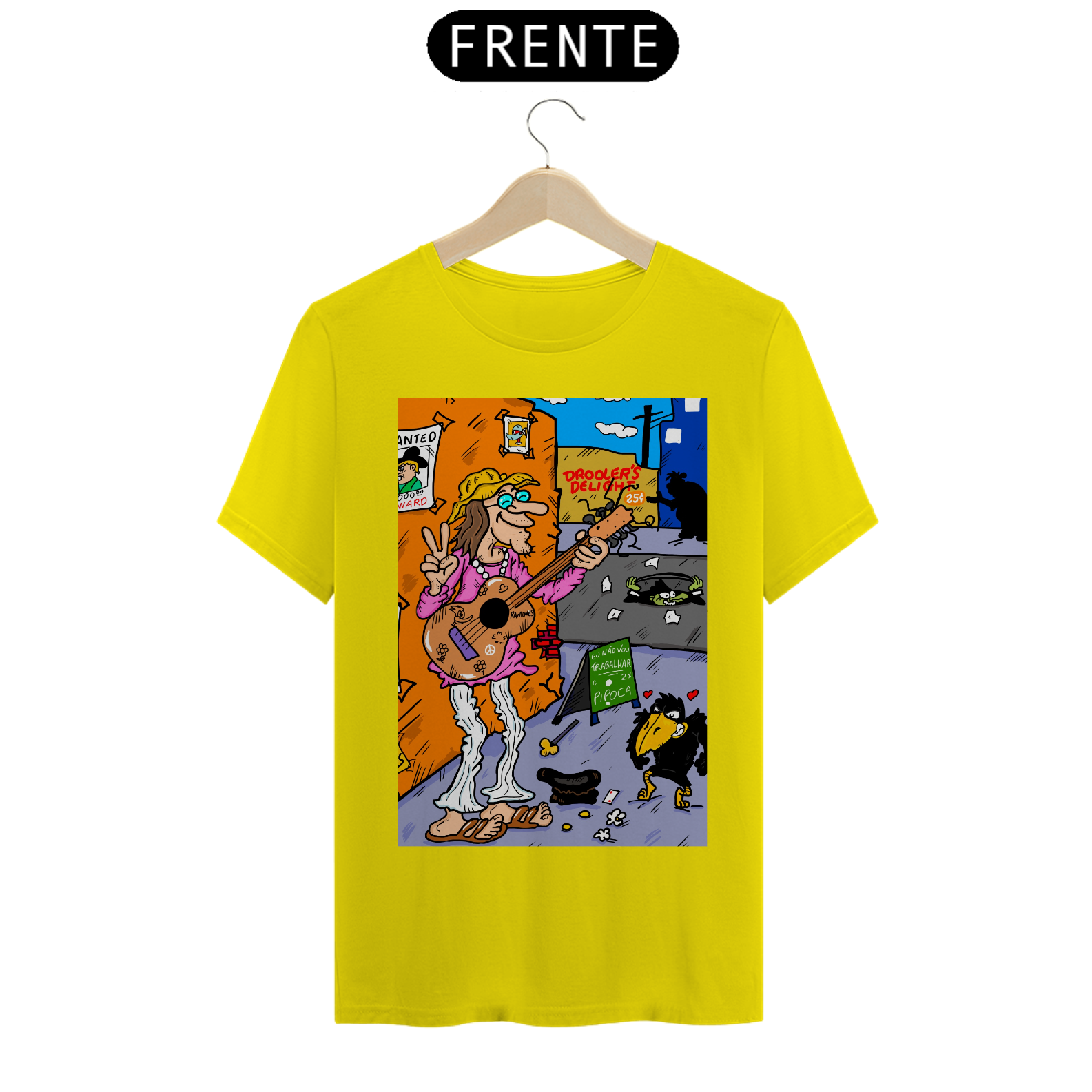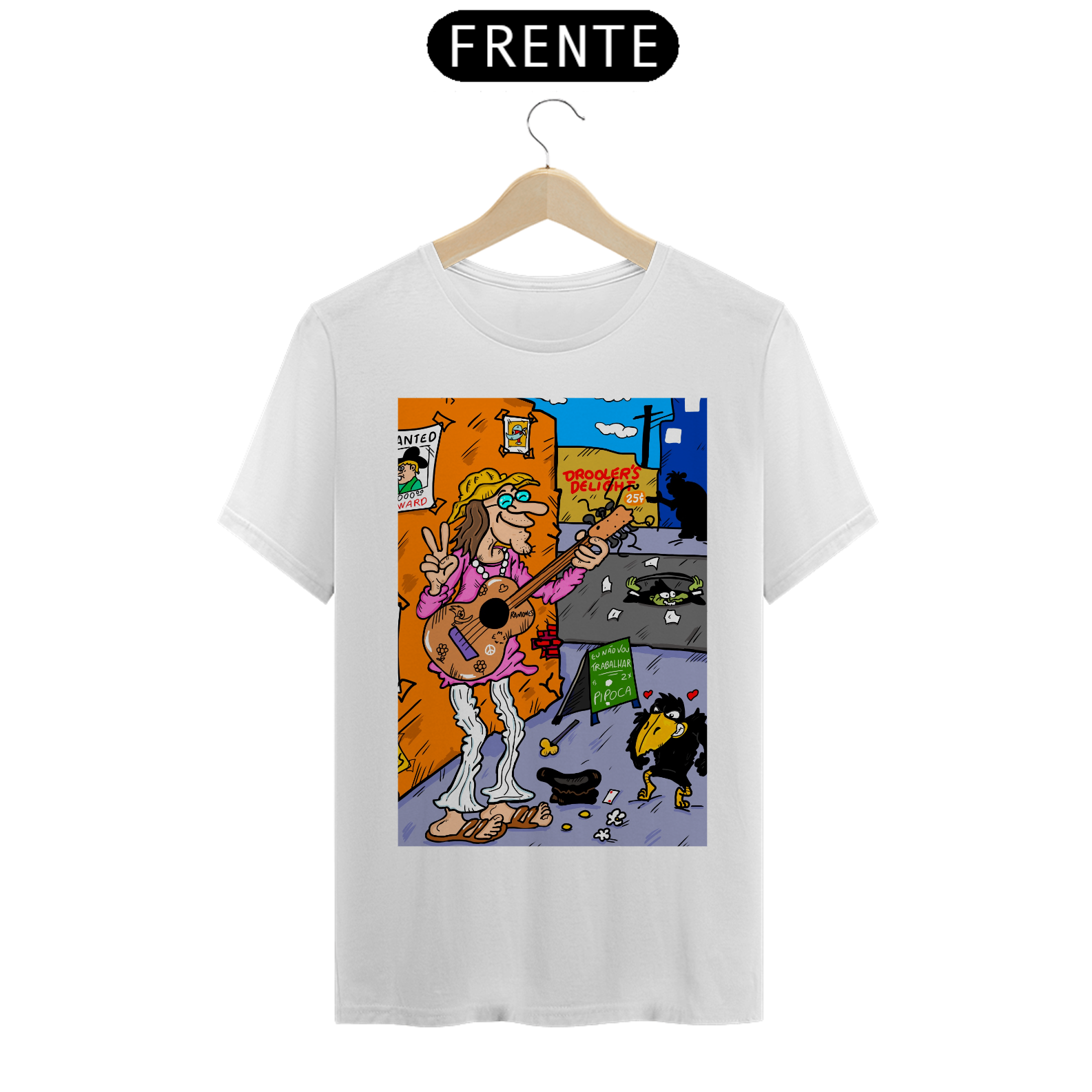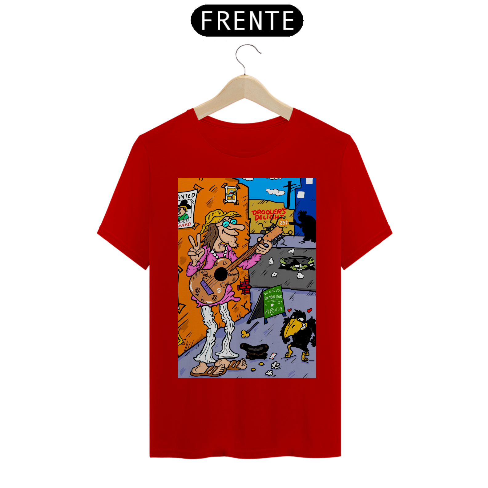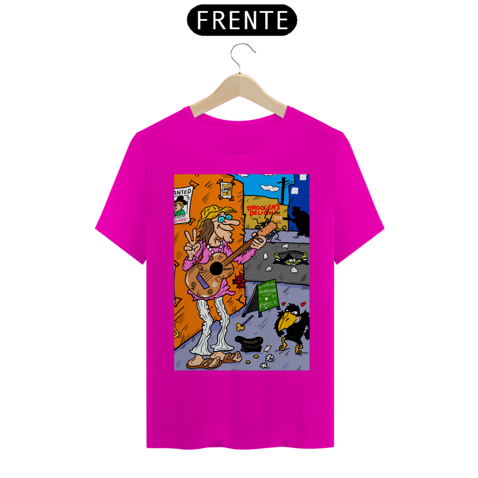 Cores do produto: Como cada tela de computador ou celular tem seu próprio jeito de mostrar cores, então a cor da sua camiseta e da estampa pode ser um pouco diferente do que você viu online.