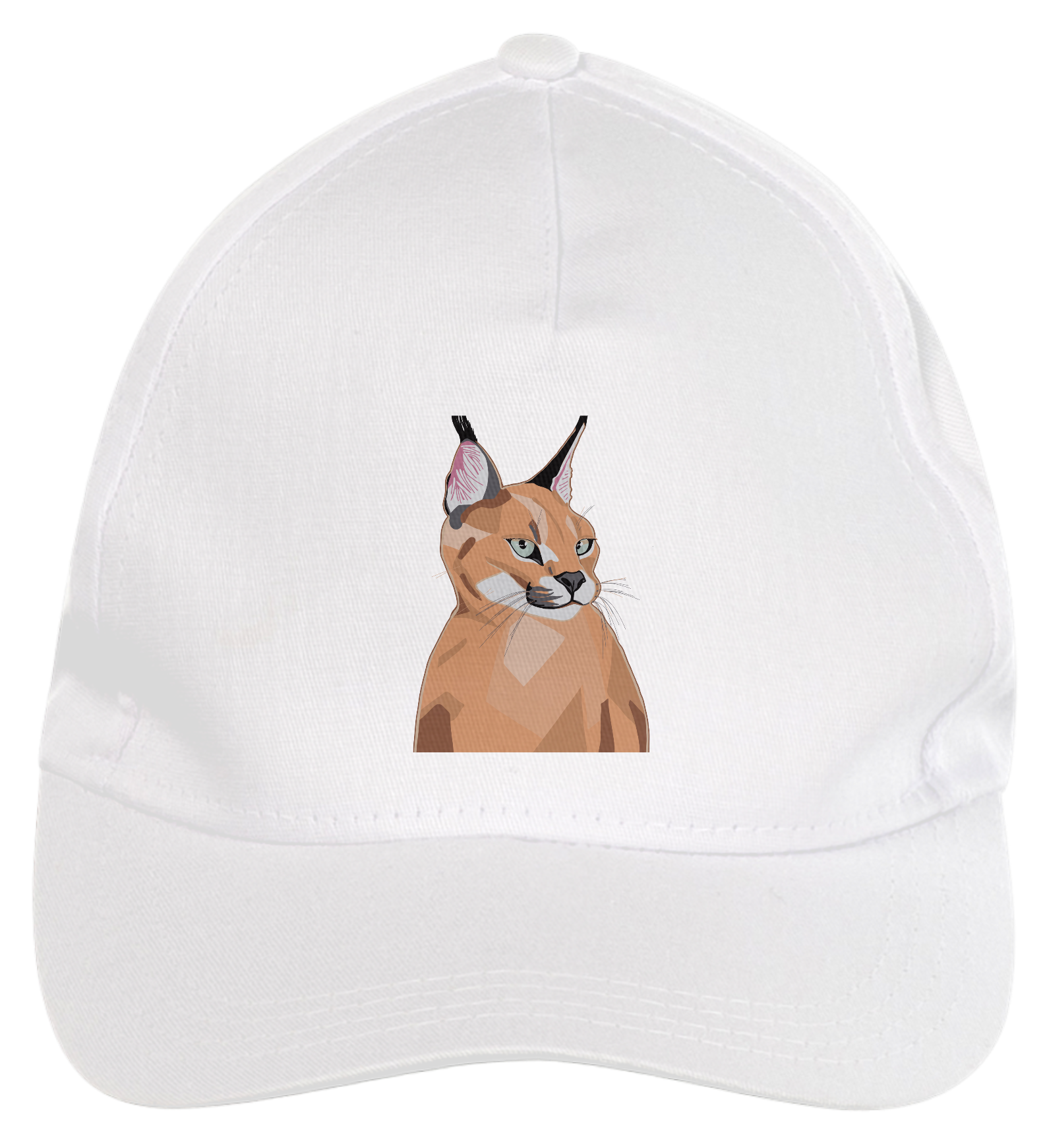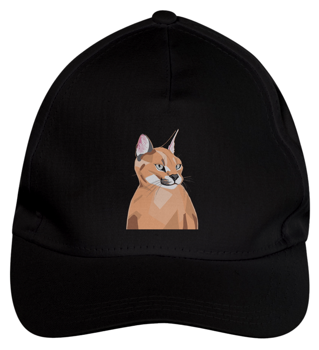 Boné americano com transfer frontal em alta qualidade, aba curva e fecho em tira totalmente regulável com pinos. O modelo veste tamanho "único".