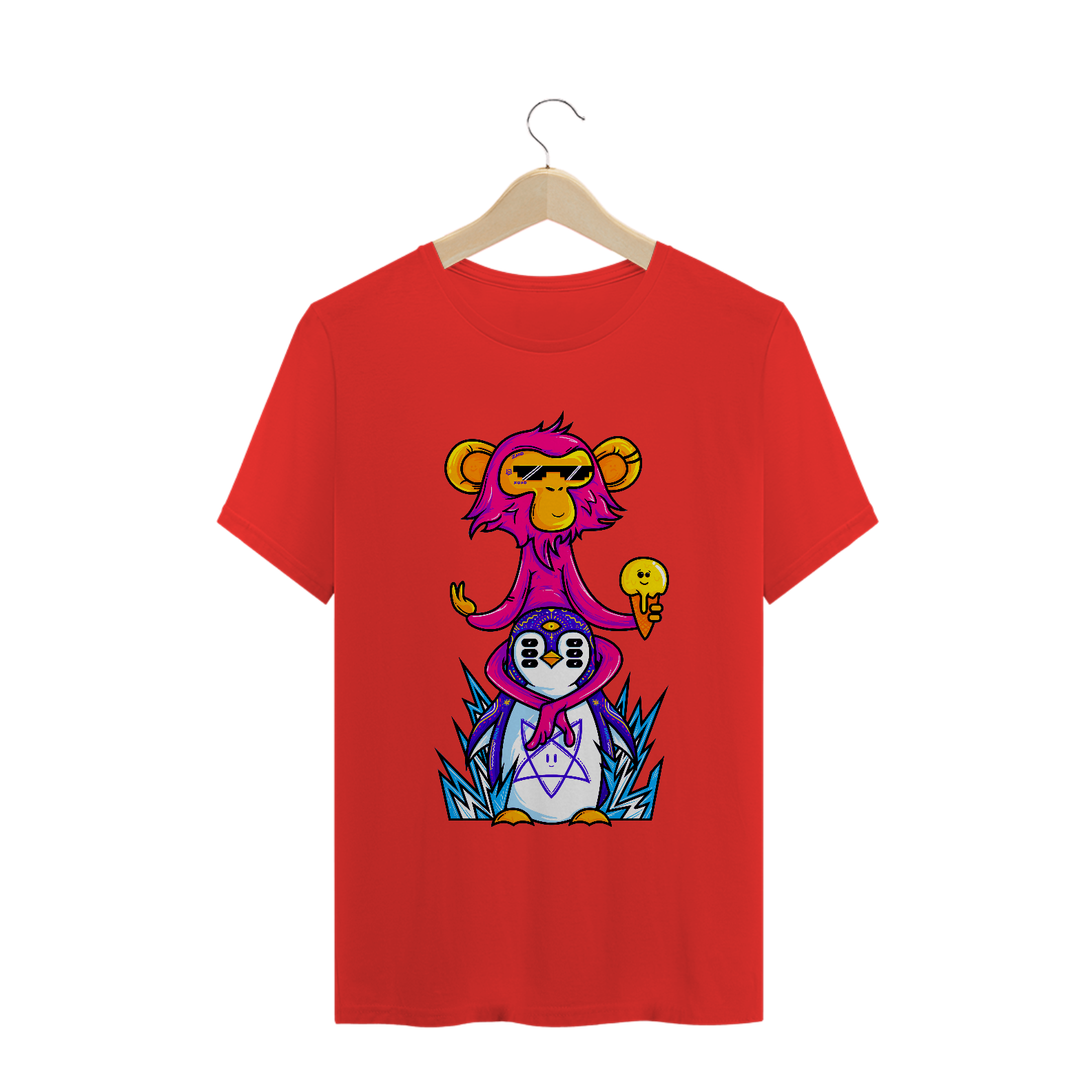 Cores do produto: Como cada tela de computador ou celular tem seu próprio jeito de mostrar cores, então a cor da sua camiseta e da estampa pode ser um pouco diferente do que você viu online.